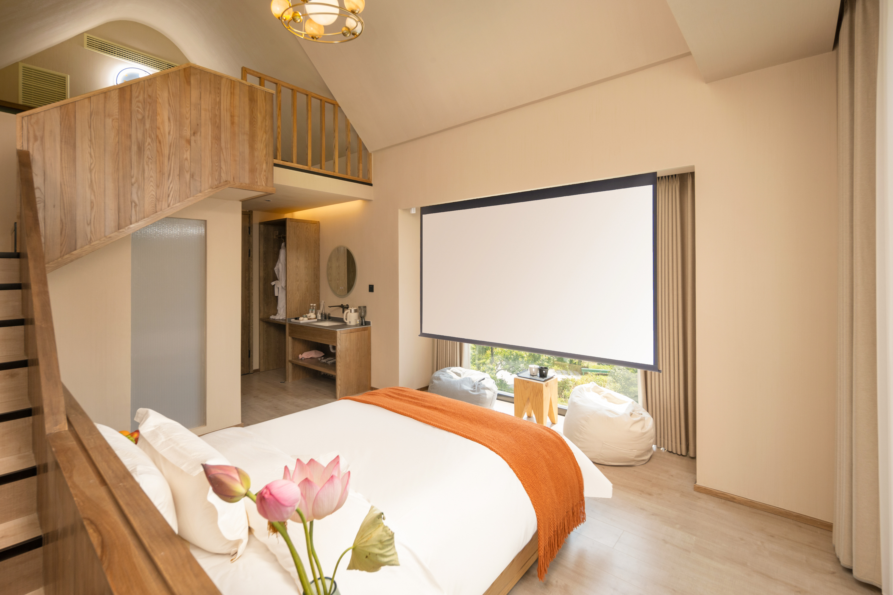 禅光·温馨亲子房『Loft+竹林景观+智能客控+巨幕投影+金可儿床垫』