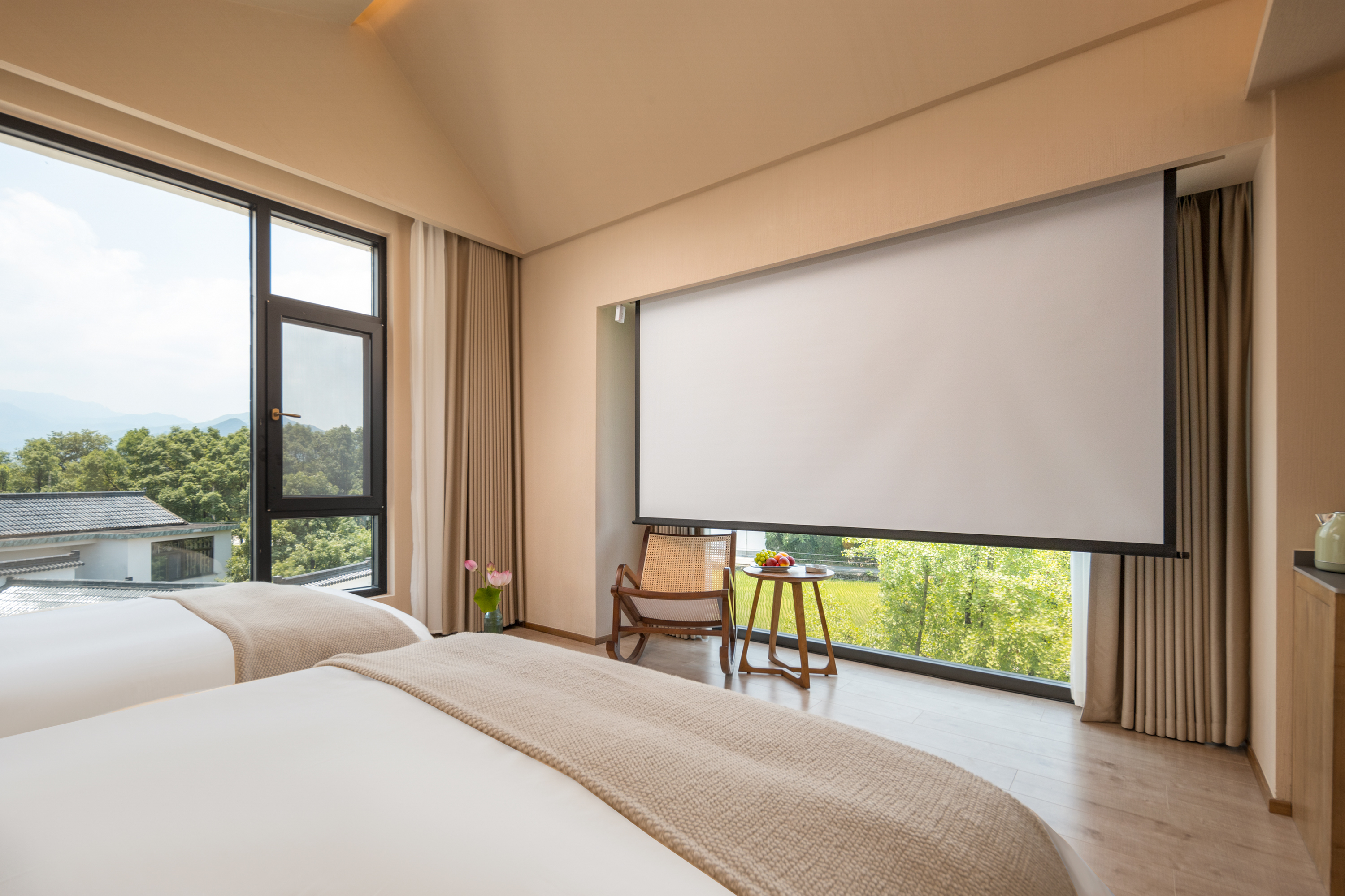 扶叶·双床房『多角度观景+智能客控+巨幕投影+金可儿床垫』