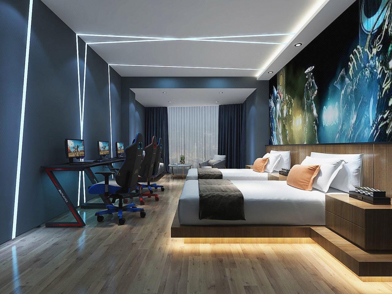 速戰電競豪華大床房[RTX3060顯卡+HKC2K144Hz曲面顯示器]