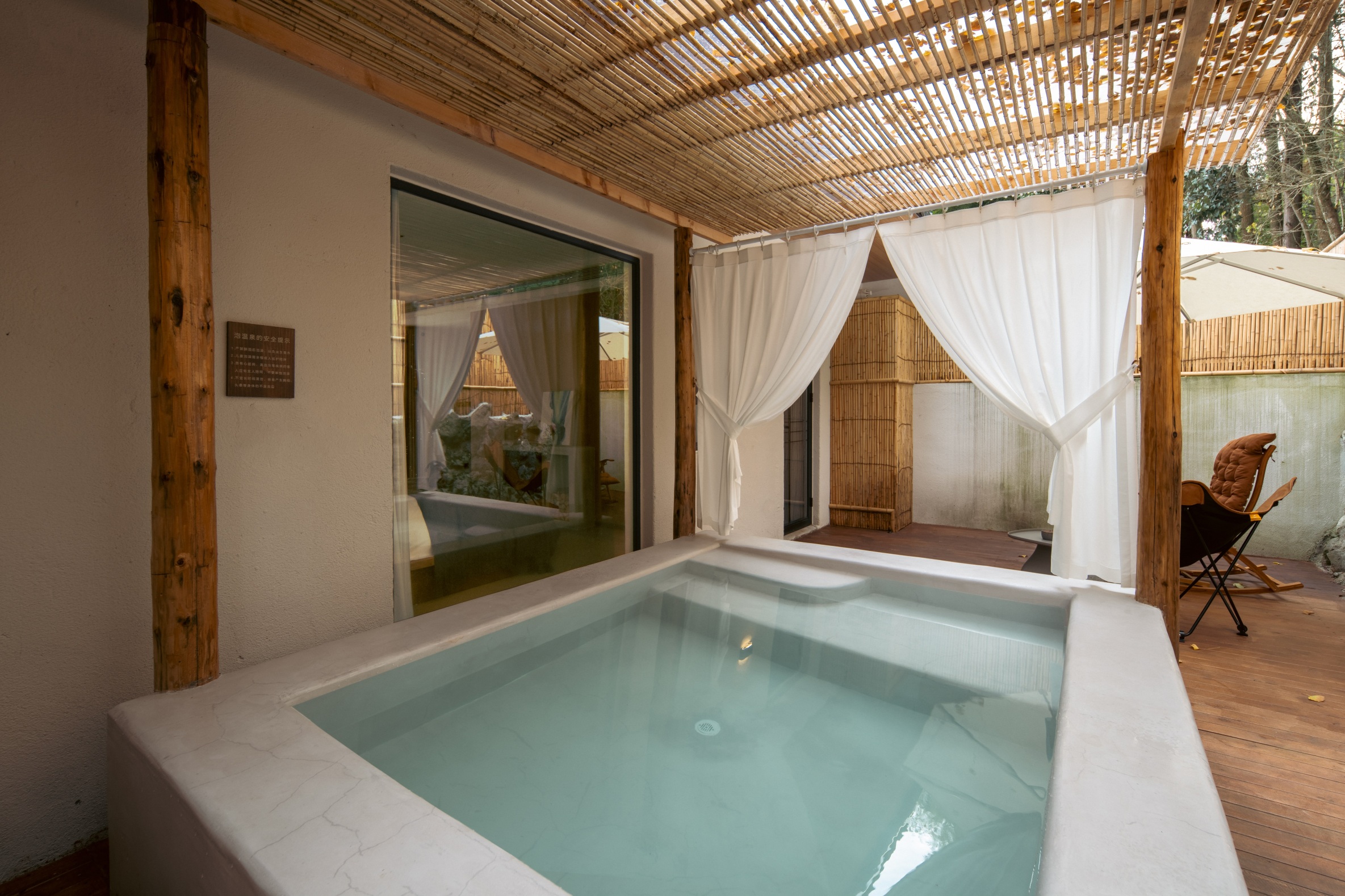 该项目原来是一个破旧的民居建筑,由知名酒店设计师倾力打造。不仅注重民宿内全方位的舒适度,还特别注重客人在空间中的隐私,设计了一户一院一私汤的套房模式。在田园乡间归隐、修心、休闲、度假、娱乐。这也是耳隐酒店的核心经营理念。