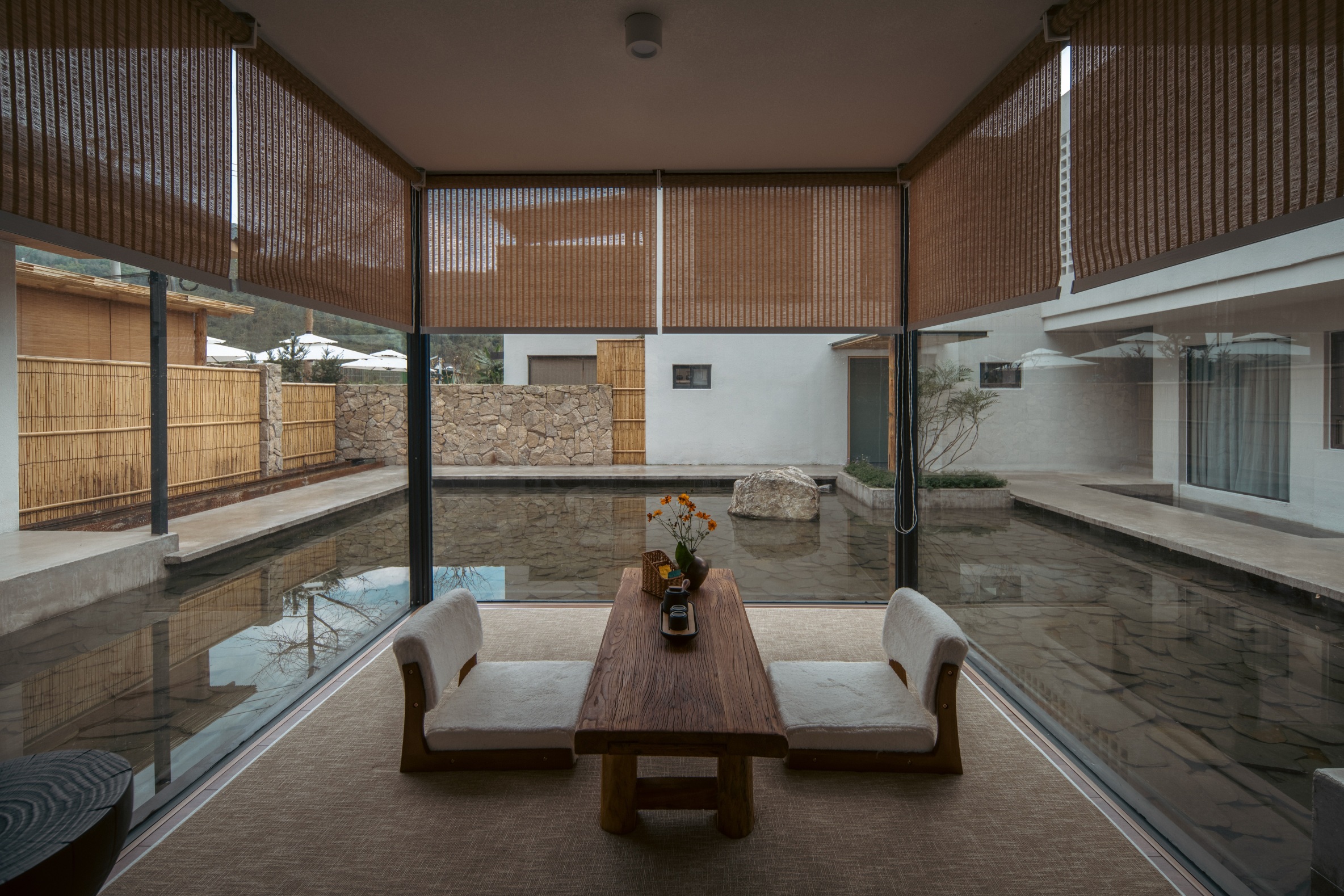 该项目由弗尔思肯酒店设计机构设计,选用环保生态的材料打造出侘寂风格的建筑空间,无论是从建筑风格还是室内设计,都体现出一种人文的生活美学。