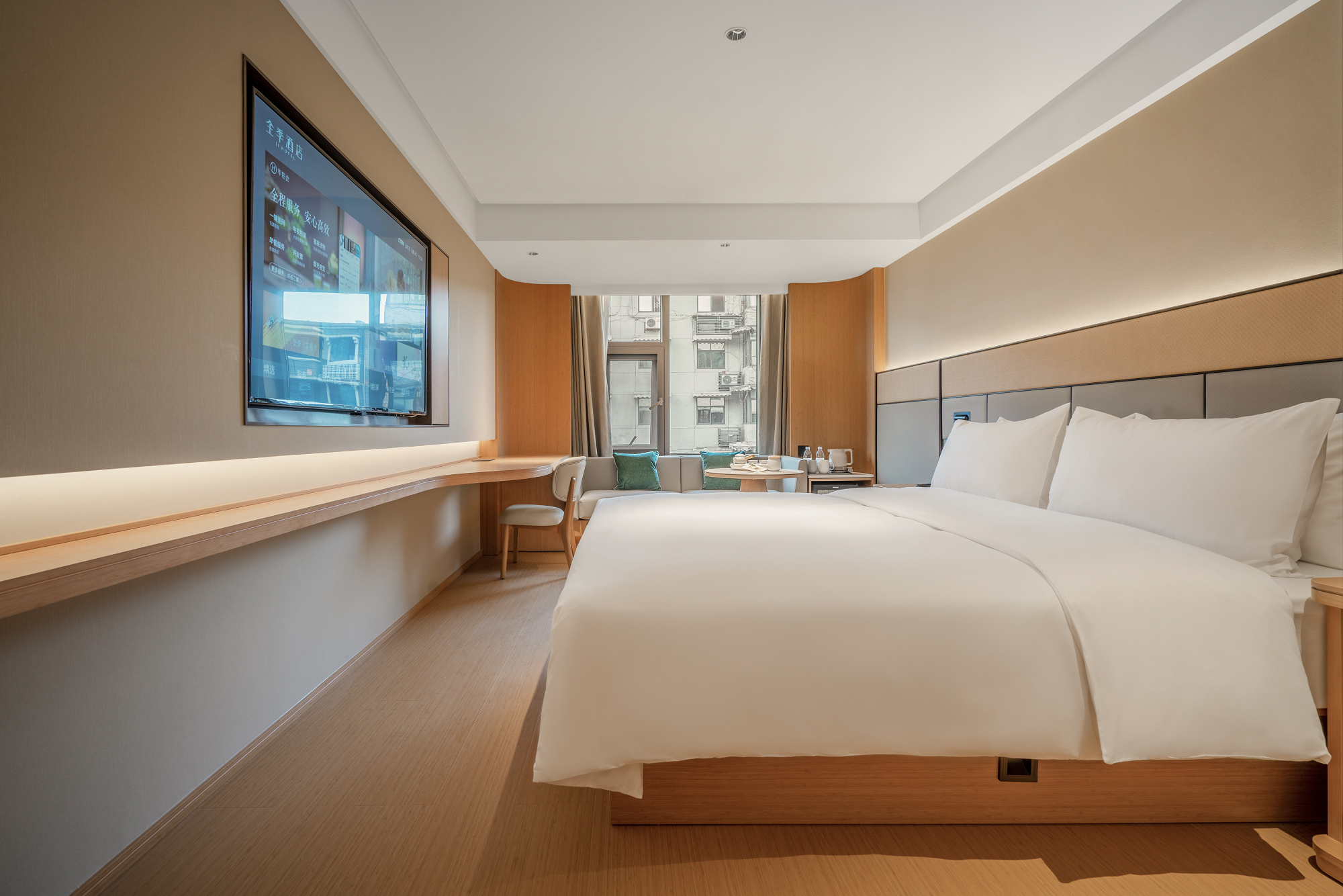 It is a mid-range hotel brand under Huazhu Hotel Group, adopting the All Season 4.0 decoration standard, with full intelligent voice control, and equipped with a free parking lot, self-service laundry, gym and restaurant; An autonomous robot is provided to offer contactless delivery and leading services. Adhering to the five virtues of Confucianism - "Gentle, Good, Respectful, Frugal, Courteous" as the design concept, unnecessary elements are removed in style design, returning to the original intention of use. Bamboo, pine, wood and large - area blank space are used in the hotel space to bring a pure space to people in the bustling city.