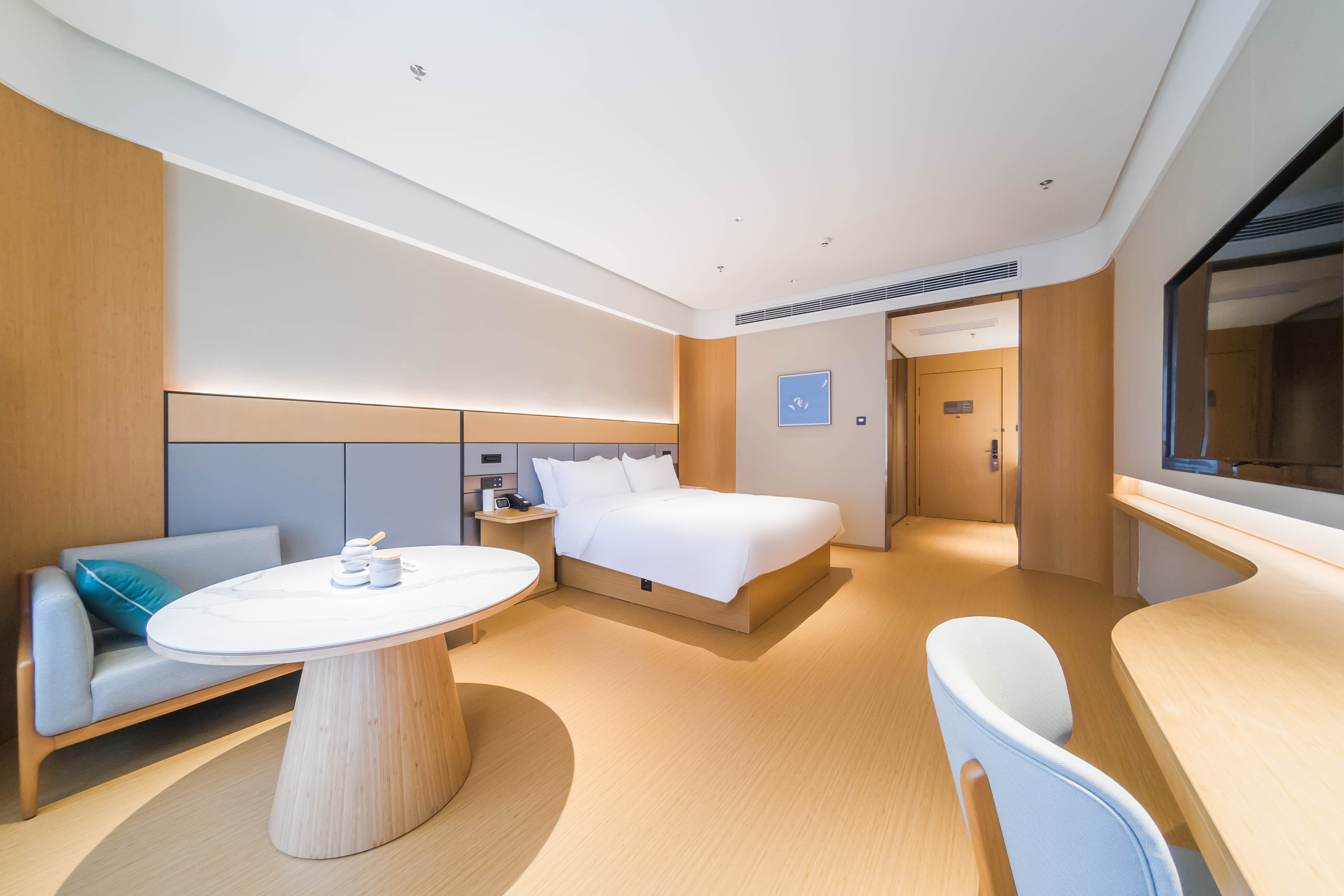 全季酒店以“温、良、恭、俭、让” 的待客之礼融入人文生活态度,在产品、空间与服务中打造全季生活方式,从自然中获取灵感,寻求还给宾客“自然·而然”的入住感受,崇尚适度的品牌理念。酒店客房采用金可儿(KINGKOIL),全季4.0版本用的这一款是专门护脊床垫,专业呵护颈椎健康,睡眠更舒适;天然的精油洗沐用品,愉悦,安心,舒缓压力;拾趣茶具及正山小种,白牡丹两种原叶好茶,让顾客旅途繁忙之余能寻得一方自在舒适;更有全季诗签,拾一诗,赏一画,聆听内心的平和。