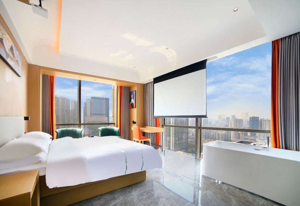 270度观景投影大床房|一线城景+巨幕投影+放松浴缸