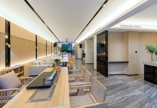 /为团建聚会而设计/ ,一楼为公区,把1楼室内120平米的面积谁都设置为公区,可以聚会,以及提供会议室,饮茶区,可以轻松容纳30人,可以聚会开party。可以专门为客户私人定制相关定制活动;