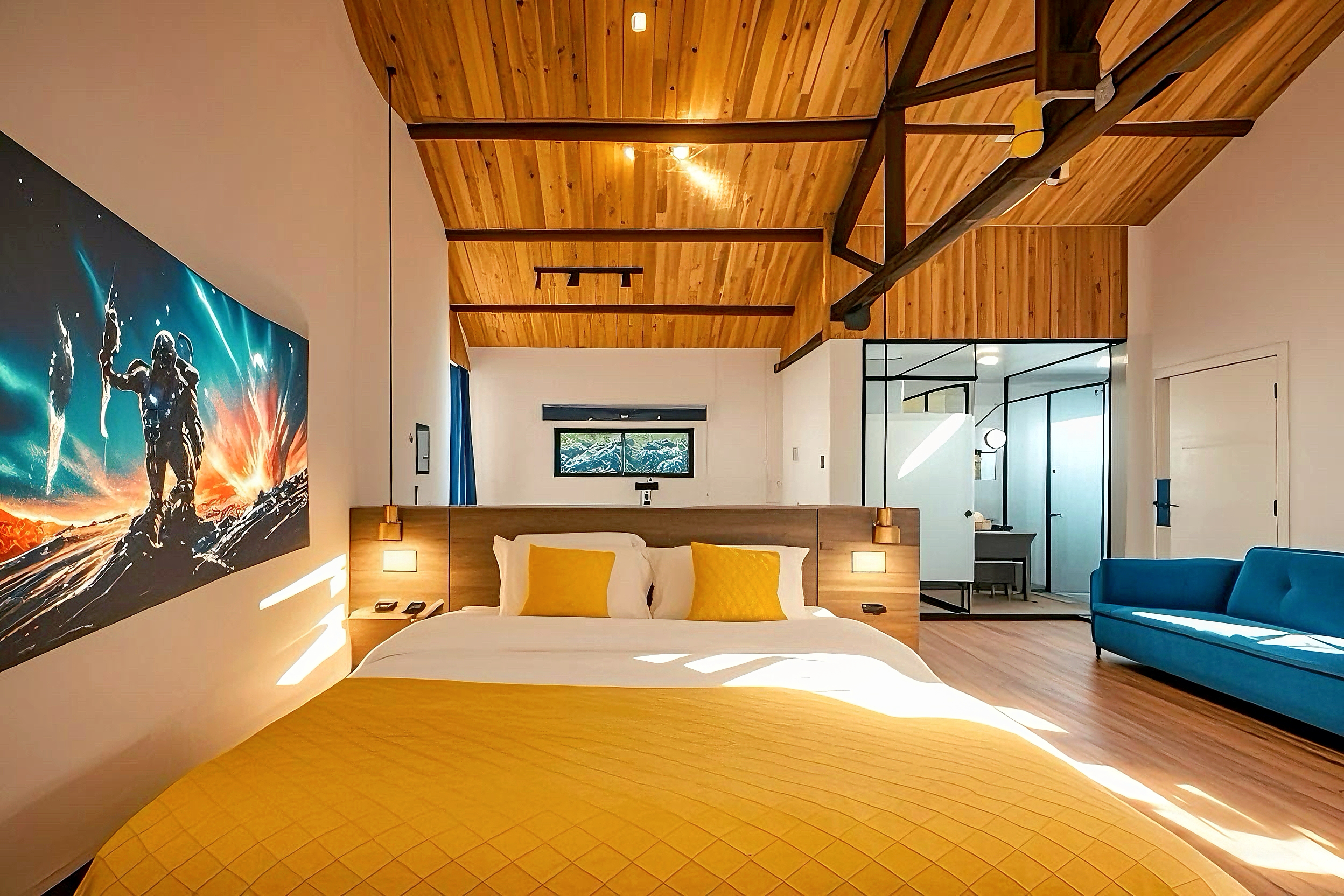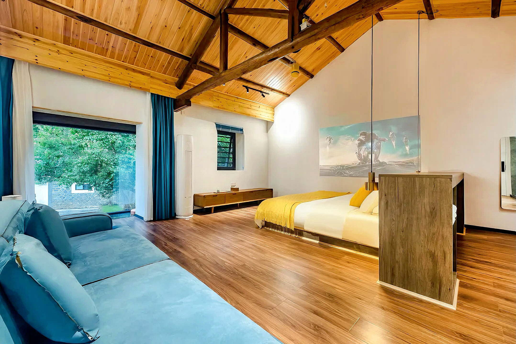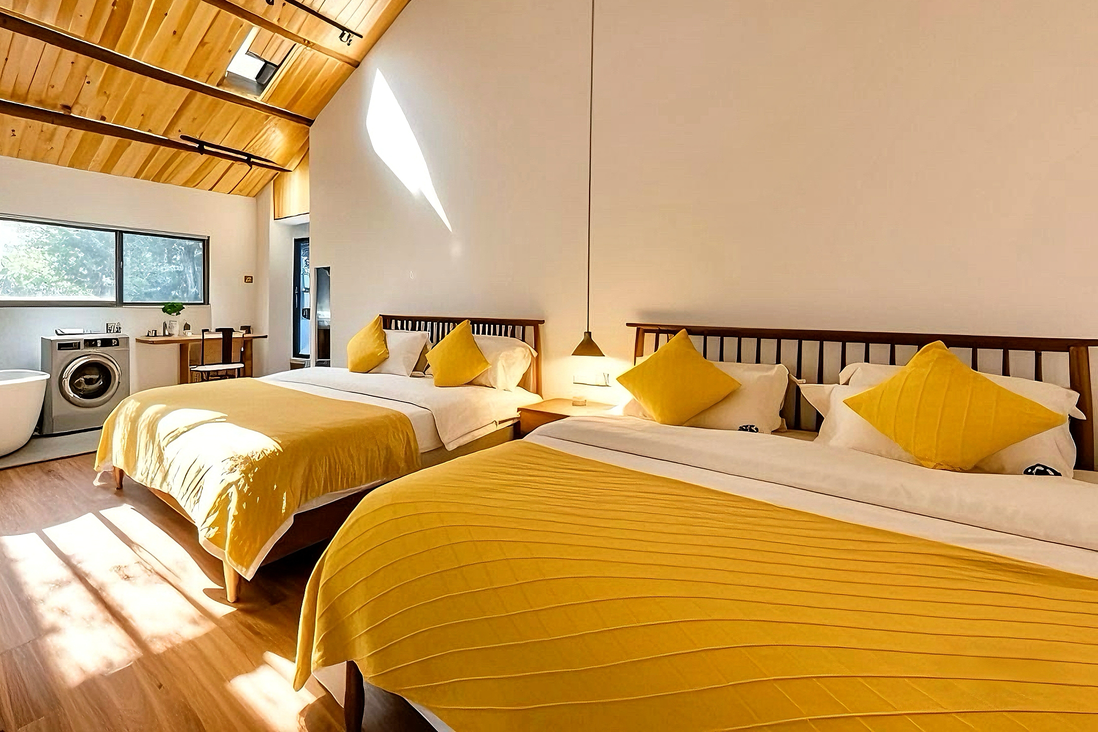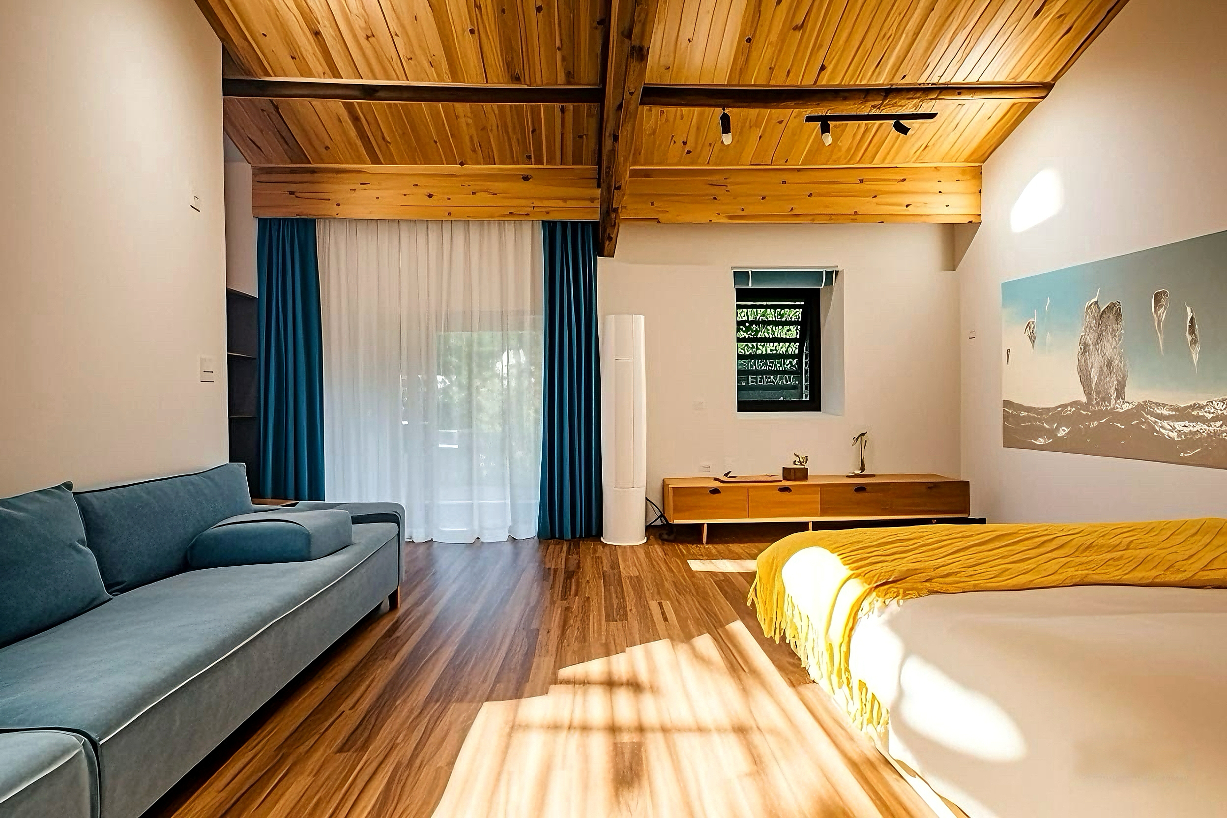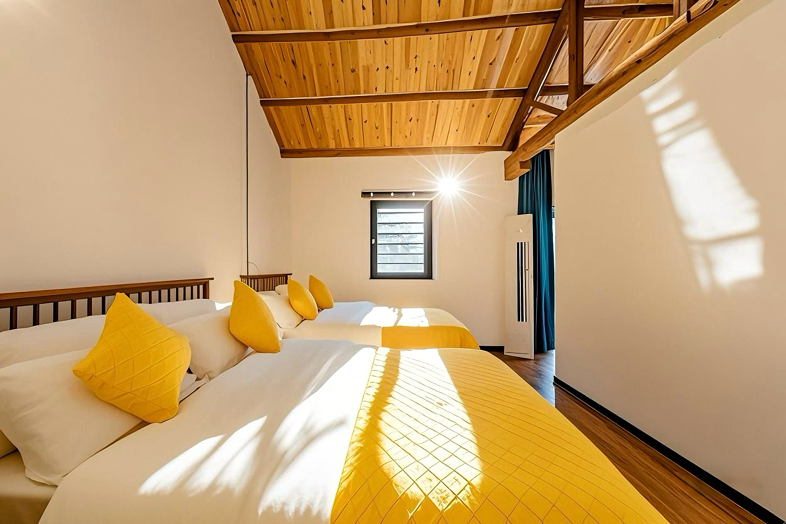 晨輝?全景窗閣云棲雙床房 【山景+高清投影+自在休憩】