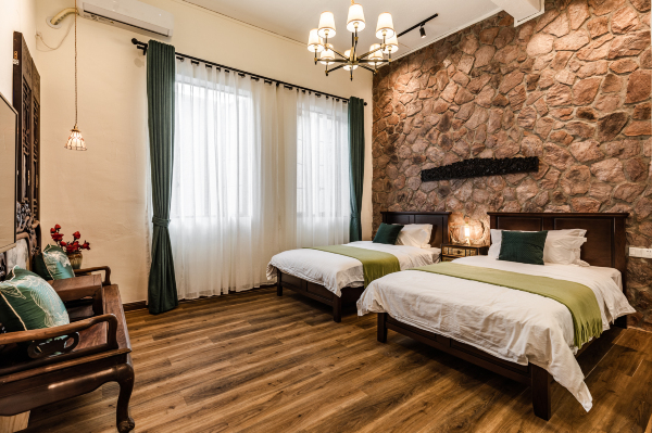 民宿坐落在历史街区宝源路上,离长寿路地铁大约三百米。这里不仅仅是民宿,更是一栋西关文化收藏博物馆。这栋别具风情的历史保护建筑在民国时期由外国教会捐资兴建。曾经是护士学校。后面辗转成为高级军官府邸,解放后收归为政府办公用地。后又经历了七十二家房客公租屋的破败……时至今日,再以民宿的面貌与访客见面,共同见证这段历史的变迁。民宿主人是明清家具收藏世家,因此,在这座房子里,摆满了他经年收藏的珍贵明清家具和摆设藏品……走进这里,徒然一阵穿越民初的恍然,时光倒流于七色满洲窗、原木趟拢门、凹凸砖雕、古花阶砖的西关文化符号之间;而镶嵌和田玉的满工顶箱柜、酸枝公座椅、花梨亢几等,则摆放于房间,让客人可以近距离体验、随意使用并欣赏。 在整栋共四层、八百多平米的民初大屋中,安装了方便上下的电梯,楼顶是超大型的露天花园,为大家提供团建聚会的场地。还有一个别致的中庭大堂,可以三五知己做饭聊天。布置处处用心,每一个角落都是充满文化内涵的艺术品。房子的设计以广府西关文化为主线,有广彩、广绣、广雕、粤剧、粤菜、铜艺、玉作、广作家具等不同主题。希望您能来这一起聊聊西关的故事,收藏的故事。希望这里能成为您在广州的一个家。