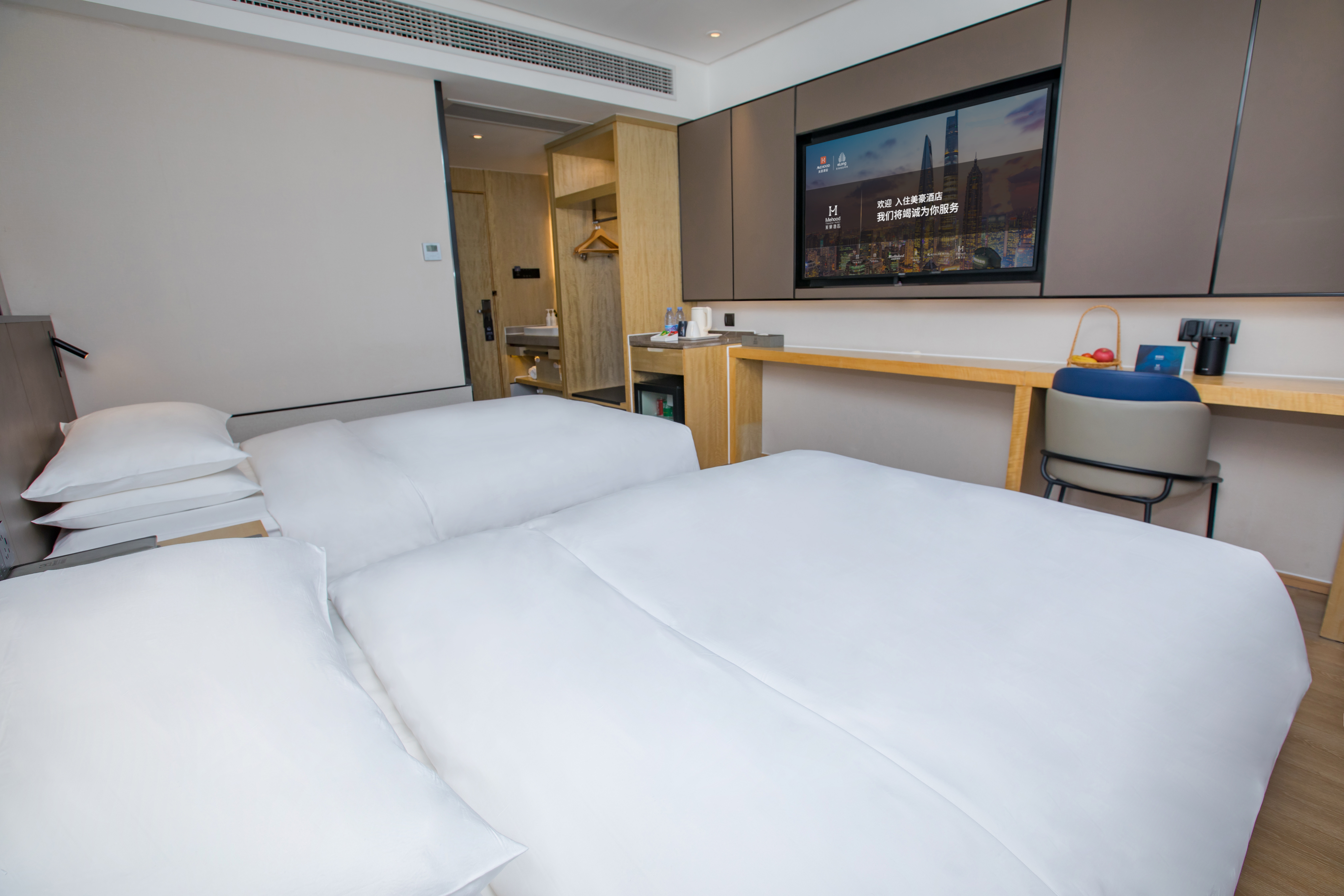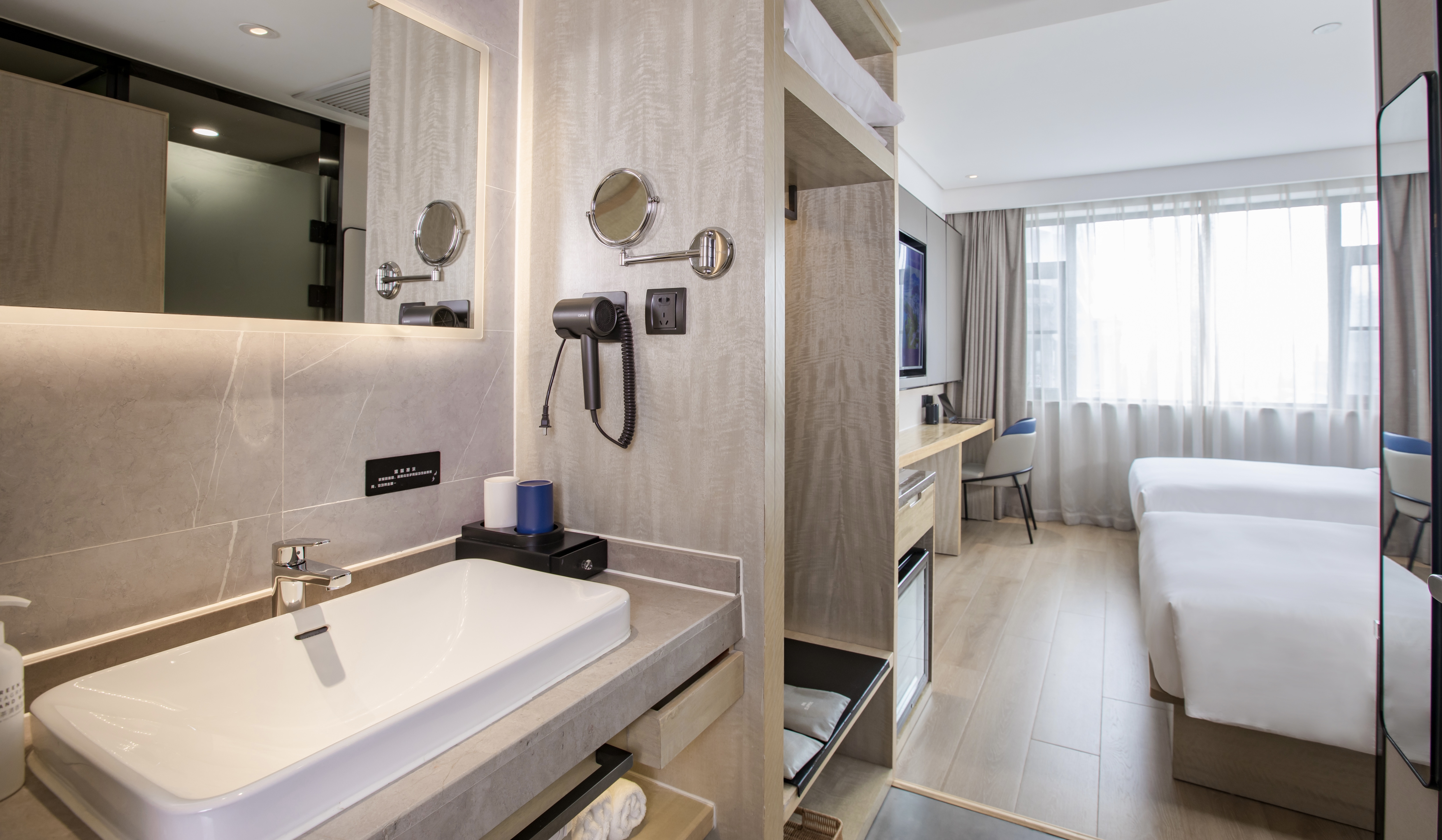 极简主义双床房【小度智能客控+金可儿床垫+小冰箱】