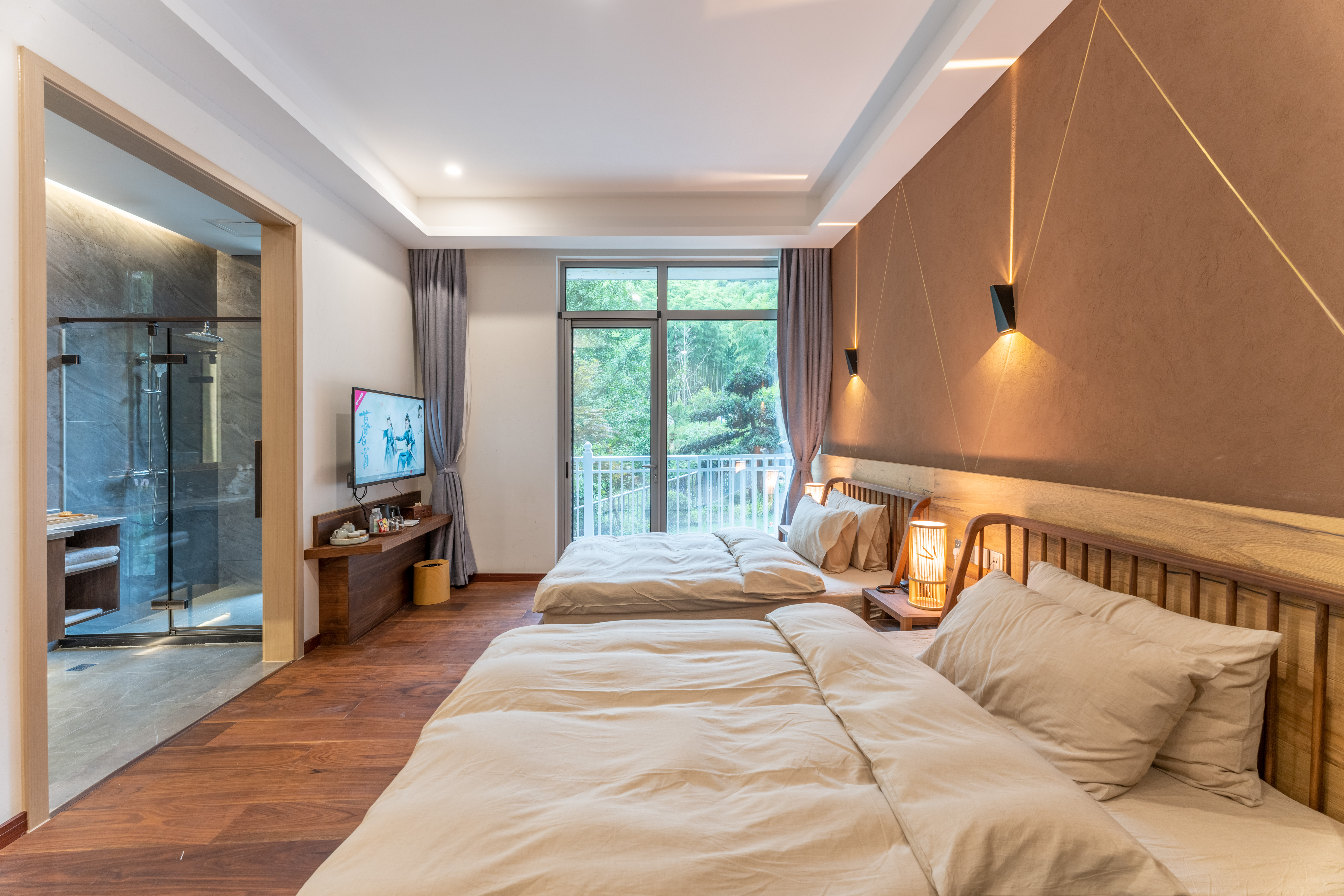 民宿位于王位山森林古道入口处,目前一期共有十余间客房。足不出户便可享受山林之美。民宿内有竹海玻璃栈道、品茗的茶室、会议室、餐厅、泳池、钢琴、户外花园(百年松柏、漫山映山红、红枫...),房间配置美国舒达床垫、按摩椅、法国Damana洗护用品、全套TOTO卫浴...宜情侣度假、亲子居家旅行、企业团建。让您深度体验杭州自然乡野生活。