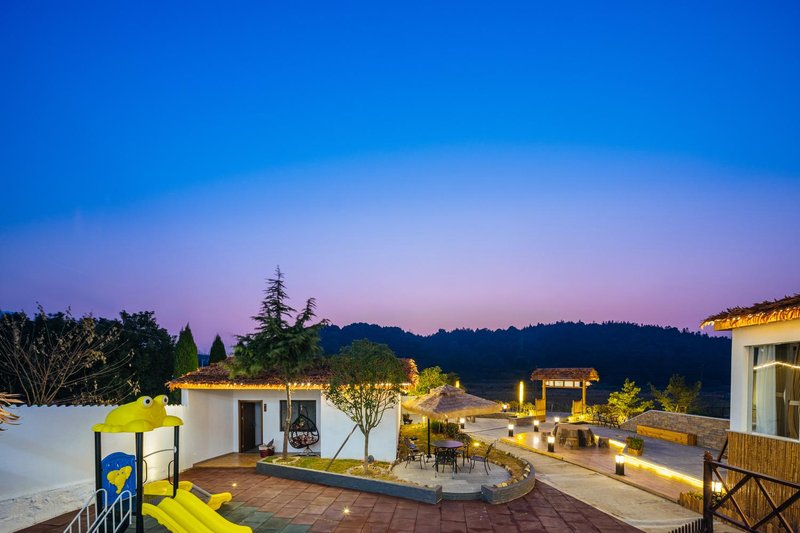 民宿配有庭院设计,秋千、花草、院落,儿童滑滑梯,处处皆风景,房间安静干净,夜景更是一道风景线,在天台上悠然喝茶,欣赏蓝天白云、日出日落,风起雨落,大自然馈赠的美景犹如挂画一般。