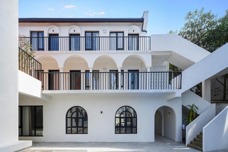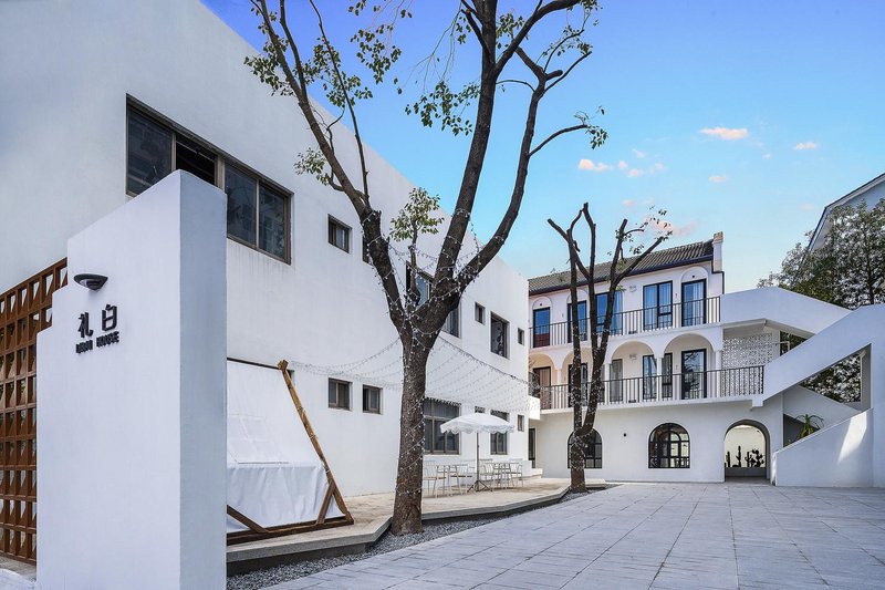 遇见礼白,惊艳时光。礼即致敬,白即简约。民宿就是想为顾客打造最纯净的时光。本民宿位于绍兴延安路未蓝文创园区10号楼,民宿整体为摩洛哥风格。颜色以白色为主,视觉感觉简约大气。白色立柱和黑色栏杆,映衬出黑白分明的高级感。圆形拱门和方形落地窗,为住户营造出浪漫的氛围。