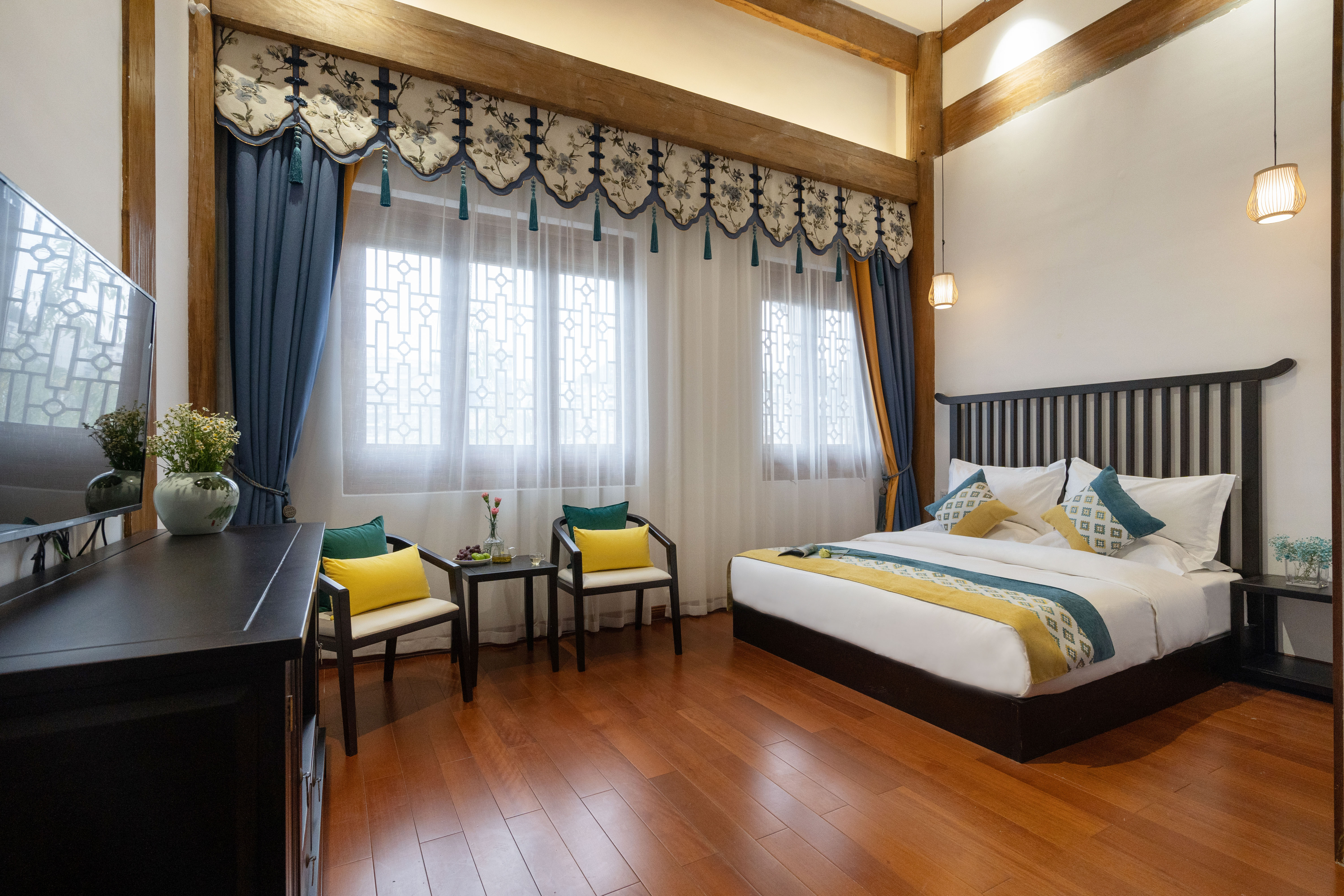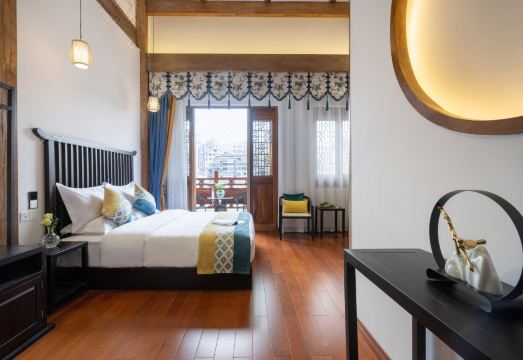 洪江曾府酒店:洪江区曾府酒店管理有限公司隶属于北京曾府酒店管理有限公司,是旗下曾府酒店连锁品牌的又一力作。曾府酒店是一个有着独特发展方向的全国品牌连锁酒店,其酒店均位处于中国文化底蕴深厚、自然景观优美、生态环境宜居的城市景点,湖南曾府酒店精心选址于怀化市洪江区素有“中华商业故宫”的徽州会馆。如果酒店的成功只取决于房间的数量,那么曾府酒店远远没有达到。因为曾府酒店从来不致力于成为房间数理和体量大的酒店,而是更致力于成为精品的、舒适的、体验好的酒店。正如创始人曾照辉先生所说,"这不是意味着我们比大的酒店好,因为我们很精品。我们是与众不同的,就是这样。曾府酒店响应当代生活方式。所以我们提供一种无尽的生活享受。洪江曾府酒店,位于沅江和巫水交汇处的黄金码头,紧邻巫水河畔,是洪江古商城文化旅游区十大精新建筑之一。酒店在设计理念和装修艺术上以“徽州文化”为主题,以“儒商之道”为背景,融汇了北宋、明、清时期的徽派建筑风格和洪江本土文化,传统的徽州文脉与洪江风韵交融相依。整个建筑以木结构为主,二进一脊两堂,前后两天井,沿袭《宋营造法》官式作法,采用大屋脊吻,寓意生生不息。厅堂前方天井,采光通透,亦有“四水归堂”的吉祥寓意。其内的一榫一卯、一椽一木、一砖一瓦,都是由百余位安徽工匠历时近4年所完成,建筑面积2500多平米,总投资近一亿元。整个建筑精美如诗,融古雅、简洁、富丽于一体,展示着独有的艺术风采。酒店拥有各色江景客房、庭院客房共计26间,拥有可容纳15人酒店的中餐包房3间,可同时容纳50余人同时就餐的早餐厅、可同时融安20人的会议室一件,满足50人活动的多功能厅和为入住宾客提供的私享茶室、书吧、等共享空间。曾府酒店深厚的文化底蕴,精品的徽派建筑、静谧的休闲空间、浸入式的场景体验、定制化的服务理念,定会满足客户身心清灵的养生理念、有山有水的隐居体验。酒店为客人提供定制的早餐服务,致力于为出门在外的旅行者打造更加安全舒适的住宿环境,成为旅途之中的“家外之家”。曾府酒店,是您身心娱乐、休闲养生、亲子度假、团队建设和拓展培训的理想之选。洪江曾府酒店酒店客房全部采用智能化控制系统,智能灯光、智能窗帘、中央空调、智能电视、刷脸入住、人体感应、服务控制等智慧化功能一应俱全,住惯了千篇一律的城市高楼酒店的游客朋友,可以来此体验一下不一样的古城高端住宿。