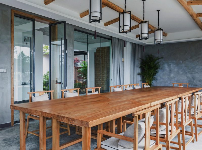 香樟树夏精品民宿位于蒲江甘溪镇藕塘村非遗乌木泥水稻传统种植区。乌木泥是一种非常罕见的土壤,有机质含量超过14%(普通的土壤有机质含量一般在1%-4%)。这是一个扔粒种子在地里,秋天就能收获的小村落。玉溪河的雪山融水蜿蜒百里,沿临溪河从村中滑过,浇灌着乌木泥稻田,也滋养着成群的白鹭,形成一片清幽的小天地。河水潺潺,终年不息,洗去乡民一天天的辛劳,换来沉甸甸的收获和幸福。临溪河畔那座千年的古箭塔,用其无尽的沧桑,默默见证着一代代人的悲欢离合。无数曾经在临溪河中光着屁股戏水的少年,如今已是他乡游子,在城市的喧嚣中奔波……乡音犹在,故土难归。 香樟树.夏,就坐落在这样一个小桥流水的村落。主人因着临溪河中那个光屁股的少年,多少年来一直还在眼前,在知命之年,游走在世界各地的他,执拗的把家乡的老房子建成了他理想中的样子。希望如他一样,既喜欢乡村的宁静又喜欢城市的舒适;既爱吃德国咸猪手又喜食日本寿司的游子;在香樟树夏,飘泊的心找到一隅栖息地