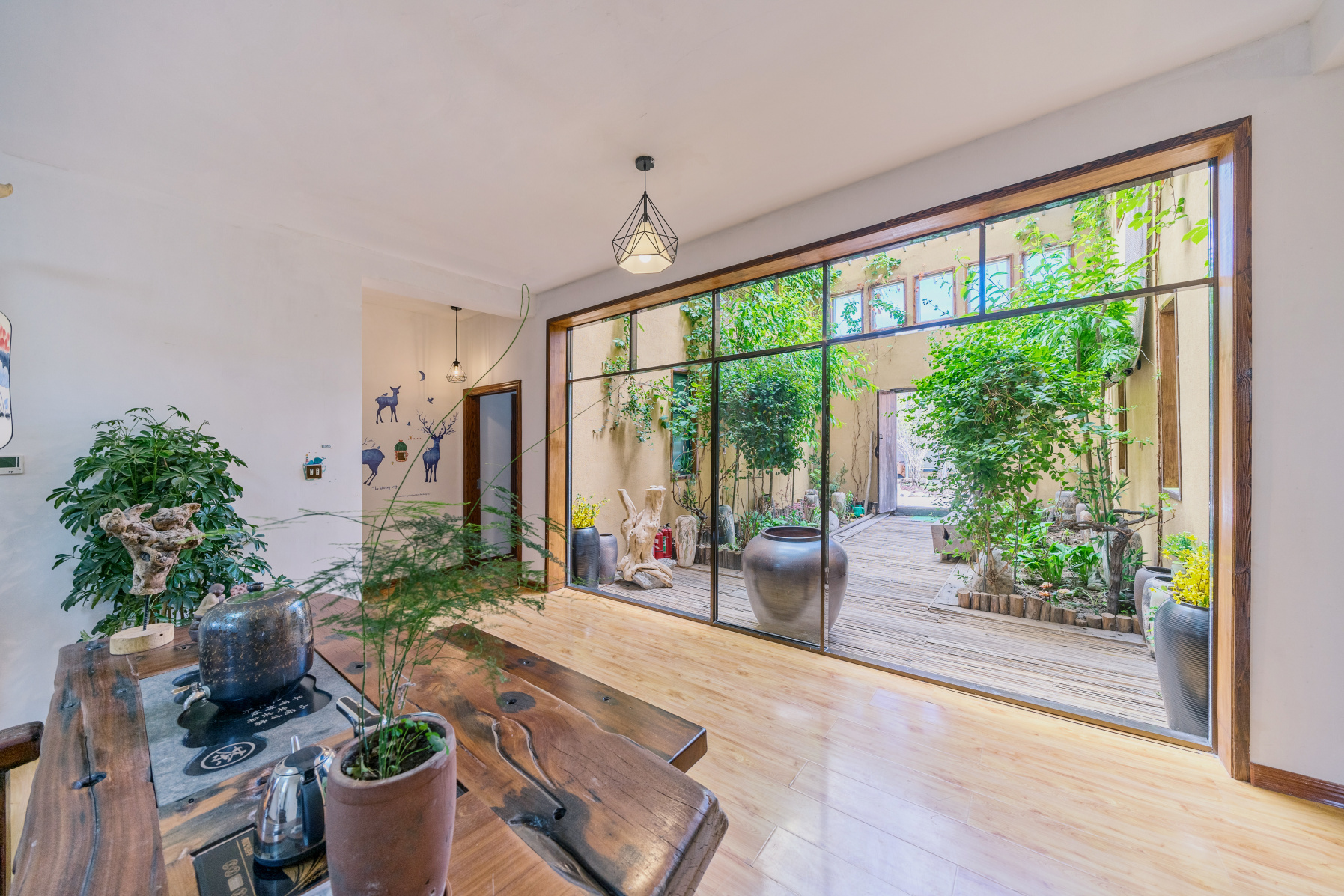 一期客房包括四种房型,皆采用厅、堂、廊的布局方式,使风光融于室内,推窗即风景。