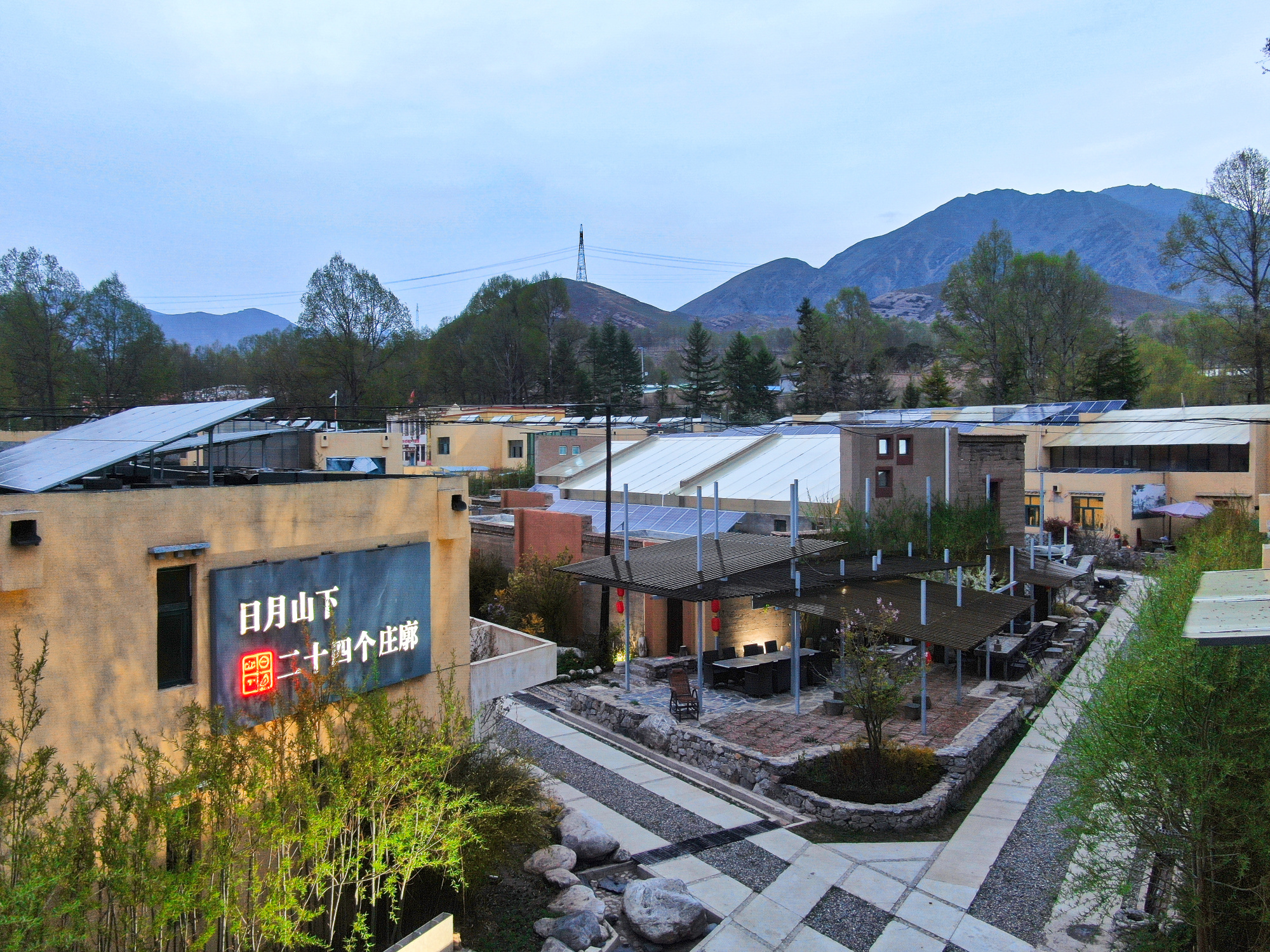 民宿聚落四周分布着:庄廓民宿、美术馆、文创超市、庭院客厅、口袋公园、多功能综合服务中心和接待中心。