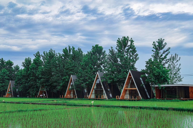 袁夫稻田,坐落在黄梅县永安水库旁,拥有近800亩生态稻田,稻田中央休息着一列7节绿皮火车,有一间兼具咖啡厅及清吧的稻梦空间,也有18间各具特色的民宿。民宿功能区都有着文艺气质,包括禾间小院、森林小屋、未来号火车、天空之境及三角木屋。在这里,你会感受到宫崎骏漫画里日系稻田的自然之美和治愈之美,你也可以感受到生活中所需要的温度和爱。