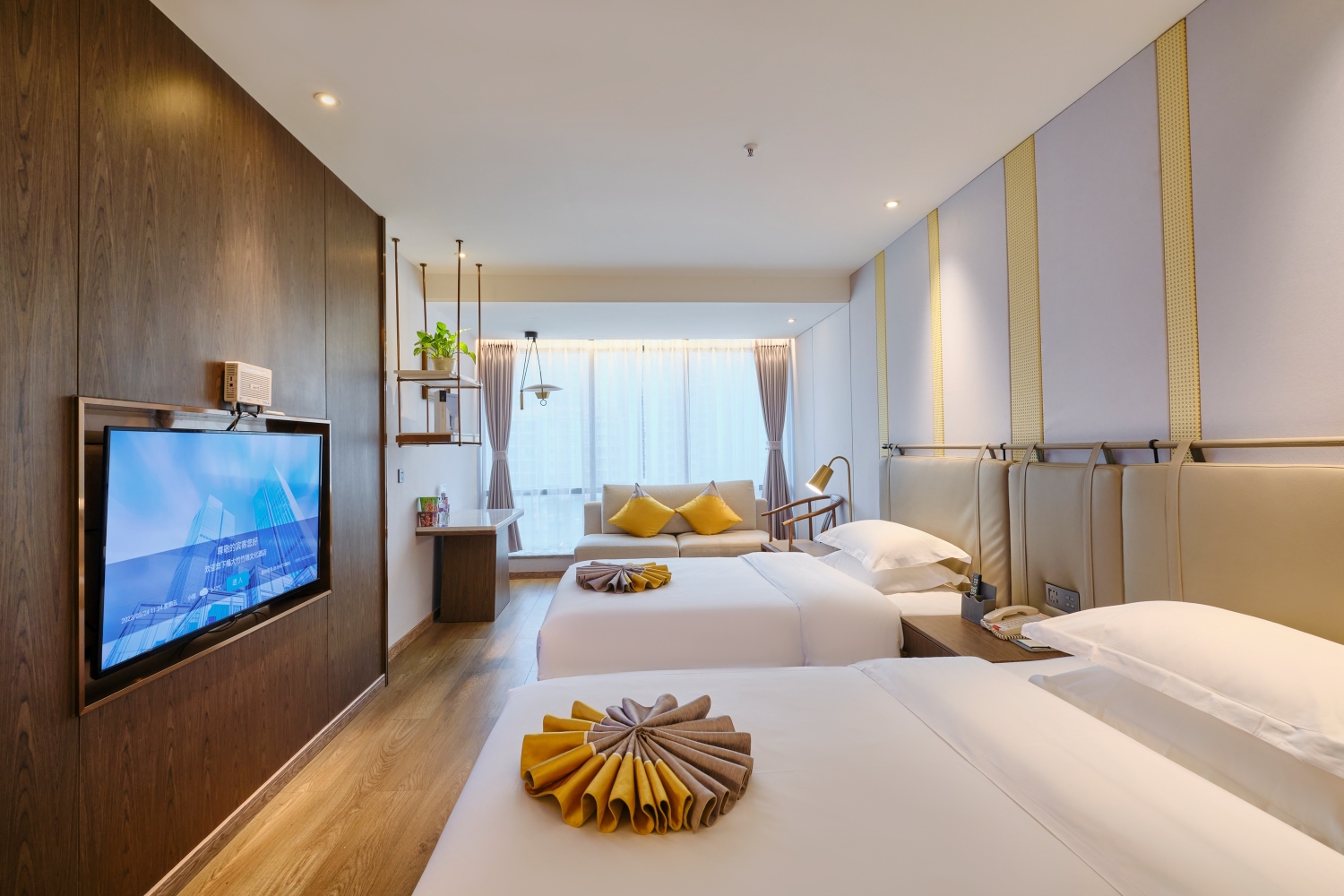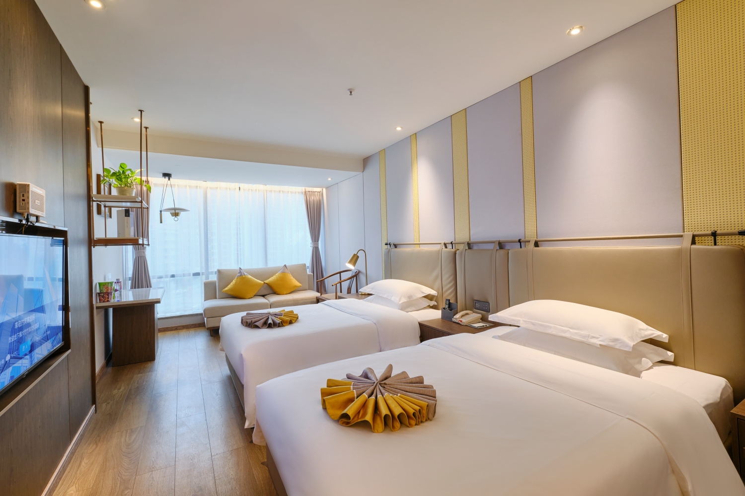酒店配备地下和庭院充足的车位停车场、文化大堂吧、商务会议室、休闲茶坊、美味早餐厅等。酒店采用高端零压床垫,高棉床上用品,箭牌洁具,智能恒温马桶,电动窗帘,独立中央空调,独立新风系统,独立排风系统,4K高清电视,高速网络覆盖,高品质洗浴用品,浪漫圆床,温感除雾浴镜,是您商务出行,携家旅行的理想之选。 “爱一座城,恋一个家”,文化是酒店的灵魂,酒店内展示有竹城老照片数百幅, 让您在入住酒店的同时还可了解竹城的前世今生!专业的酒店管理团队,带给您贴心的24小时私人管家式服务,将为您的“竹”乡之旅“锦”上添花。