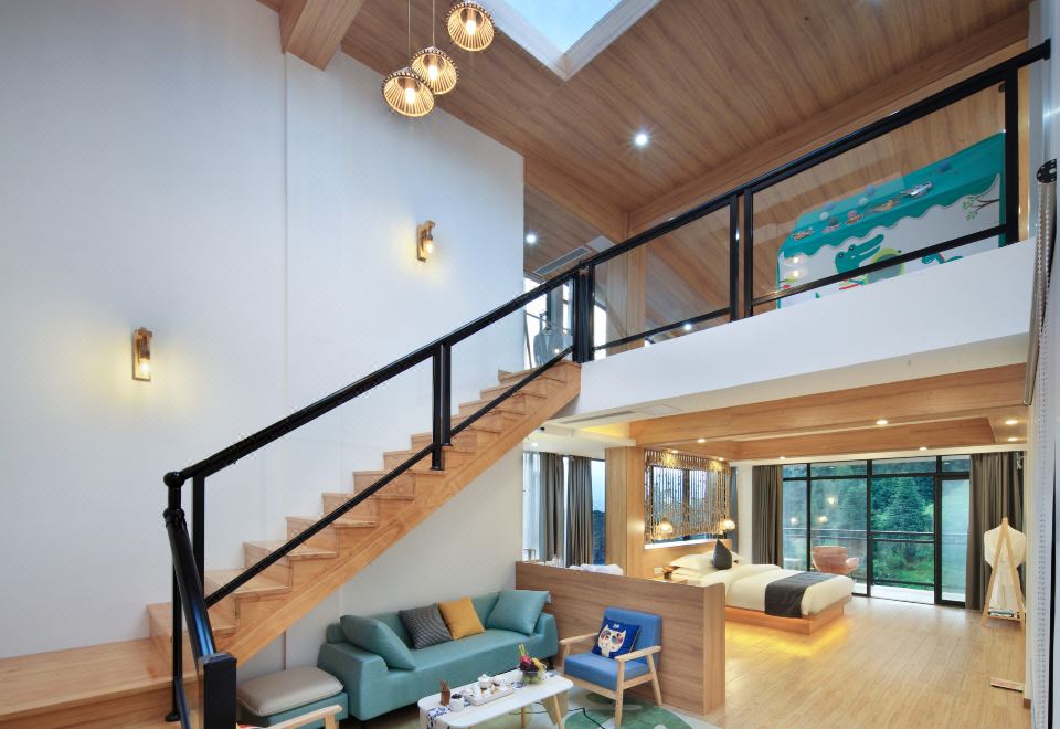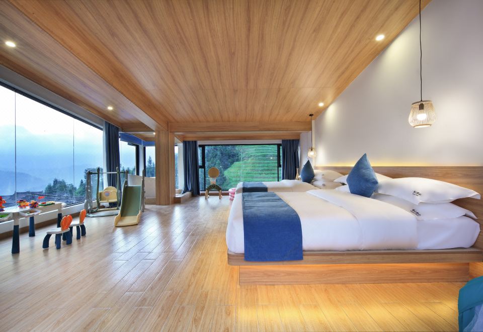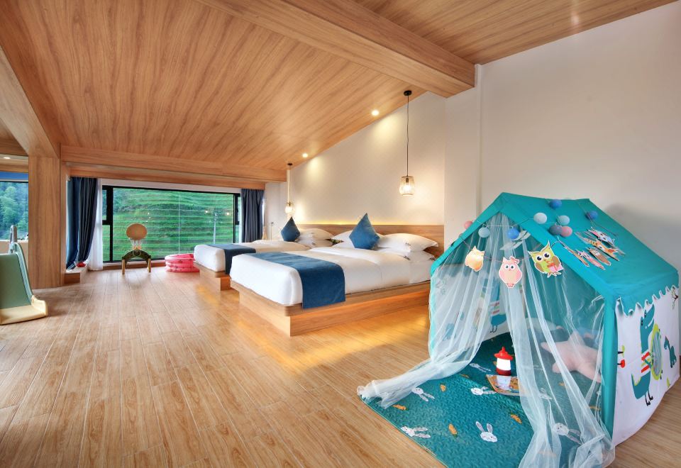 望月星辰·梯田观景loft家庭套房【超大空间+两面观景+小童滑滑梯+小童帐篷】