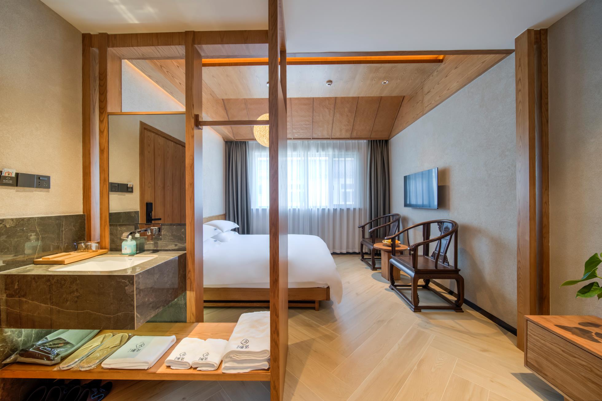 自在·徽韵小套(观景+大金中央空调+地暖+慕思床垫+休闲榻榻米+全屋白蜡木家俱)