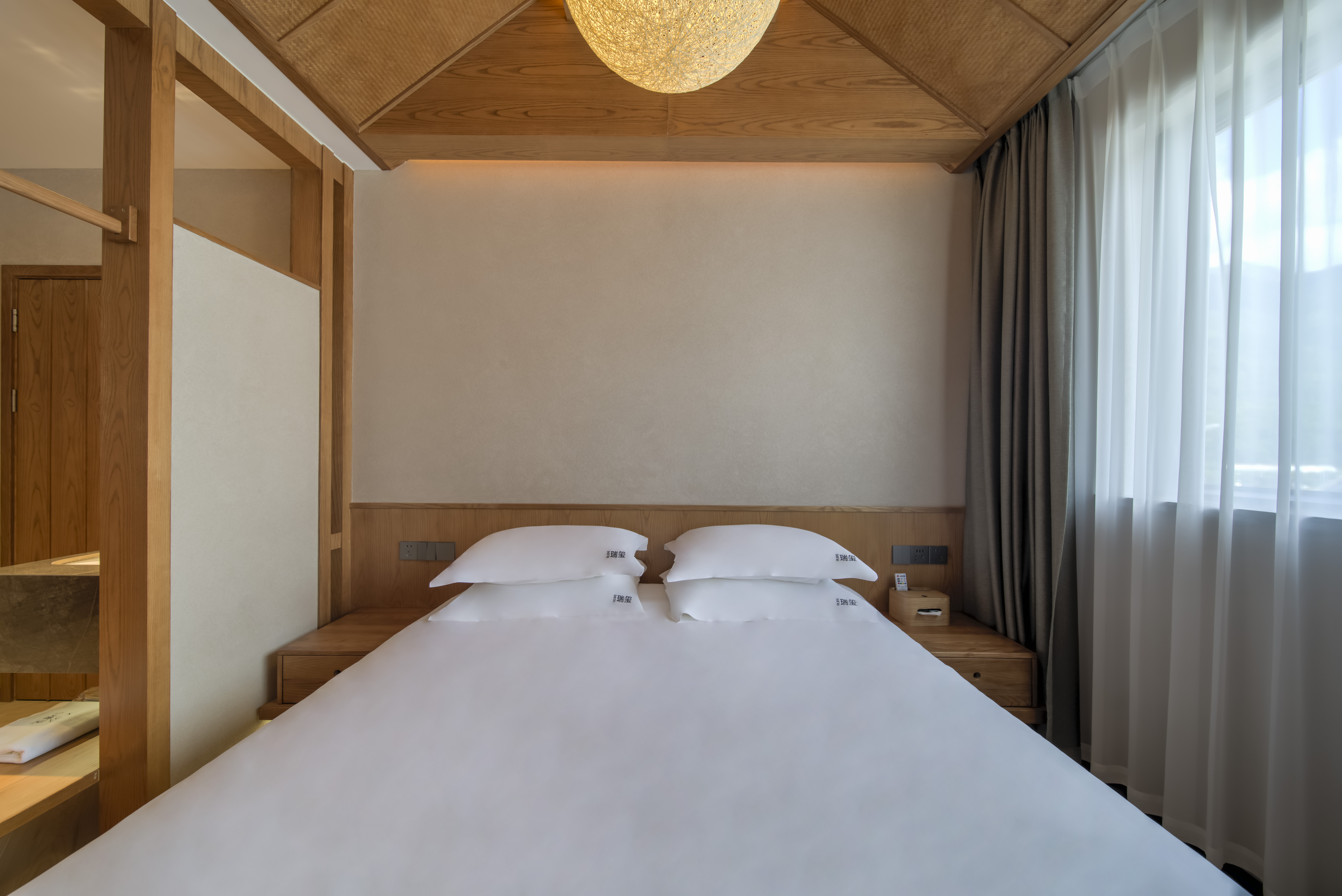 良栖·大床房(观景露台+大金中央空调+地暖+慕思床垫+休闲榻榻米+全屋白蜡木家俱)