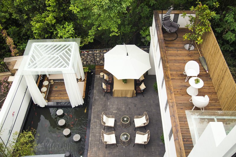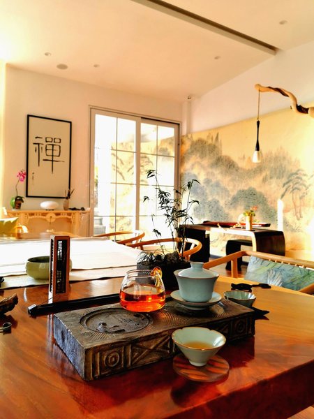 房源多古色古香装饰,还可以体验别墅内的古琴、空灵鼓等乐器,品茶、茶艺、香道、插花艺术等等。室内外环境优雅惬意,居住体验感满满!