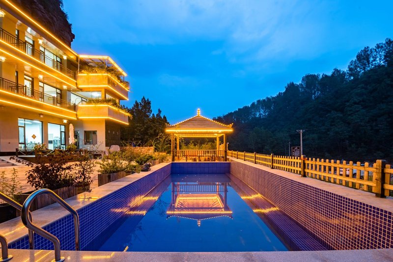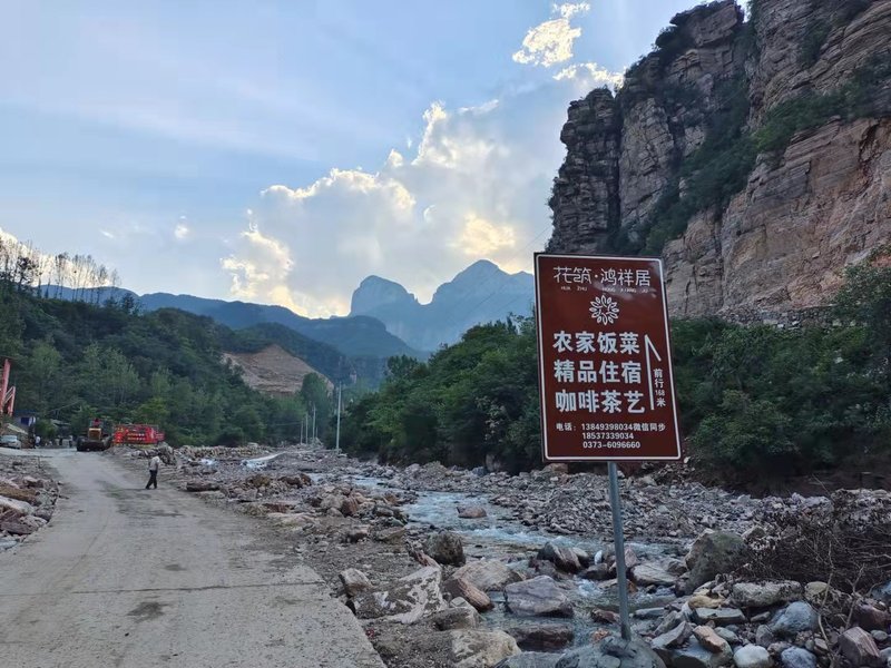 本店位于河南省輝縣市黃水鄉北平村,黃水溝長十四公里,這里紅崖絕壁,溝壑縱橫,許多地方早前只能在絕壁上鑿出天梯和山下相連,沿絕壁天梯可以到達九峰山、龍水梯、土梯、南盤、滴水寨,這里是南太行的第二臺階,輝縣人稱“西大絕'。從以上這幾個絕壁上的村莊出發,你可以上王莽嶺、十字嶺、轎頂山、老爺頂。就近能到的景區就有萬仙山、轎頂山、王莽嶺、天界山、九蓮山、齊王寨。出黃水口,沿太行山腳的旅游環線,八里溝、關山、寶泉、郭亮掛壁公路、云臺山也近在咫尺。私密的環境,清新的空氣,甘甜的泉水,可口的飯菜,舒適的房間,簡單的茶與咖啡,難忘的時光;鳥語花香、好山好水好風景,這一切小美好都在花筑鴻祥居。?花筑鴻祥居是有12間客房的民宿,每個房間有每個房間的小特色,我們有迷你KTV,wifi全區域覆蓋,入住客人一個房間免費供應兩份早餐,其他餐飲單獨計算,有可口的農家飯菜,花樣沒有太多,但是可以保證如同您家中一樣安全放心和美味,您也可以自帶食材借用廚房,廚房租金是每頓88元,也可以自己帶食材戶外燒烤,我們免費提供場地+燒烤爐,這里就是一個隨性休閑放松的好地方。靜待有緣人的光臨!