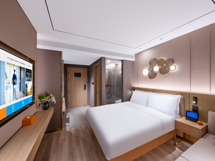 酒店配备小度音响,通过与小度对话、解放您的双手,实现自动化开关窗帘、电视、灯光、空调,24小时贴心管家服务。酒店无线网络覆盖,并配有早餐,竭力为您提供高品质、高效率、高质量的服务,一切只为您安心舒适的入住之旅。