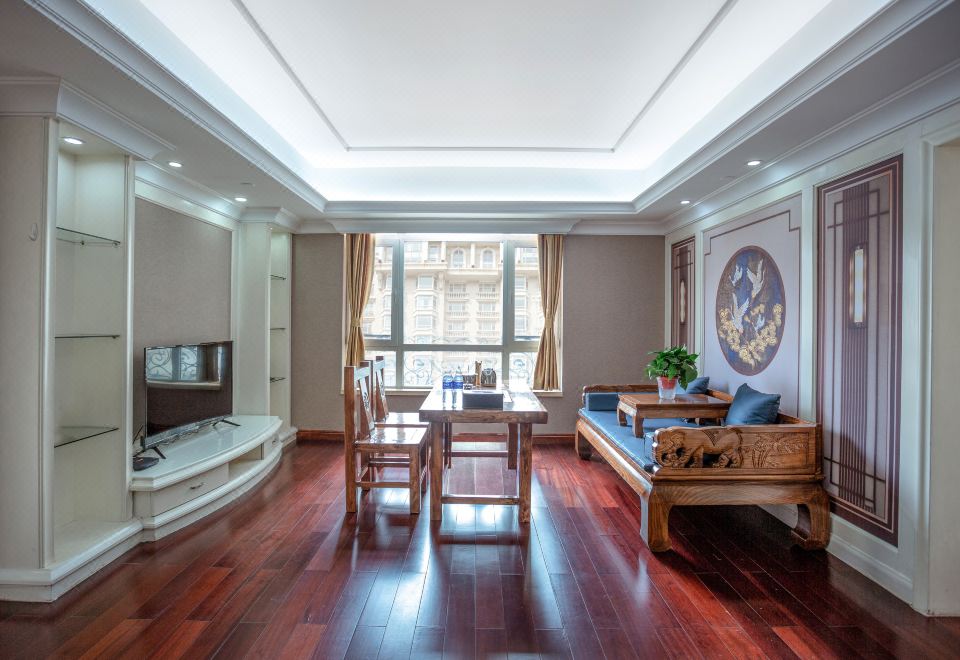 酒店集贵宾接待,商务活动,国际会议,旅游度假及酒店式公寓为一体。在舒适、休闲的商务度假生活中彻底放松身心,放飞心情。酒店重装推出豪华大气的现代化客房及套房,各类客房配套设施完善,客房内自然采光充足,环境宁静安逸,交通便利,有免费停车场。