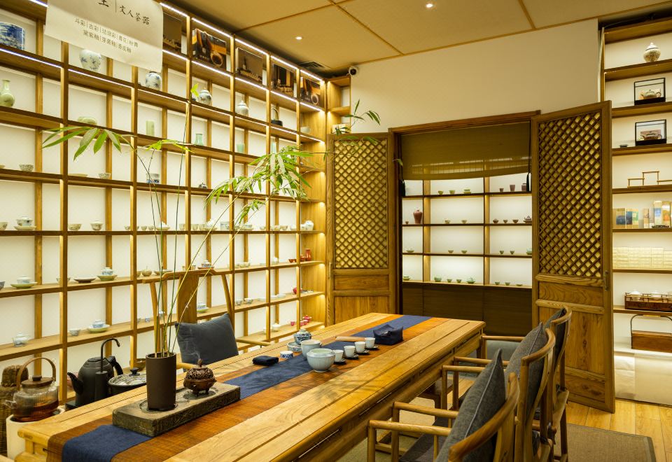 大观书院酒店(天津五大道小白楼店)位于天津河西区核心商业区海河大观内,毗邻天津的母亲河海河,距天津火车站7公里,距天津著名景区古文化街约7公里,距天津著名步行街滨江道仅5公里,距五大道也仅4公里,距天津滨海机场仅仅20分钟车程,是您出差旅行的心灵归宿。大观书院酒店(天津五大道小白楼店)以宿为中心,喝茶,品鉴,聚会,修身,构建“自然社交”理念下的心生活。是大观艺术旗下又一力作,走进老天津卫独具茶馆特色的人文主题酒店,是大观茶艺文化与都市生活空间的一次完美结合。客房兼具个性与潮流,成就了丰富多彩的居住体验。日式榻榻米风格客房,让宾客充分感受来自传统的自然、优雅。新中式客房,传统与现代巧妙结合,既轻盈舒适,又不失典雅精致。位于一楼的大观素食餐厅,近50多个餐位,不仅提供优雅的就餐环境,设有3个高档包间和6个茶室,为宾客提供私密的独享空间。作为天津茶艺人文主题酒店,茶与茶舍,是大观书院的文化特色。在茶舍,您可以一人独坐,品味怡然自得的时光或与三五新朋,在氤氲着古老民族文化情韵的茶香中,放下矜持,自然自在。大观书院,不仅是宾客放松,休憩的地方,也是艺术交流的平台。