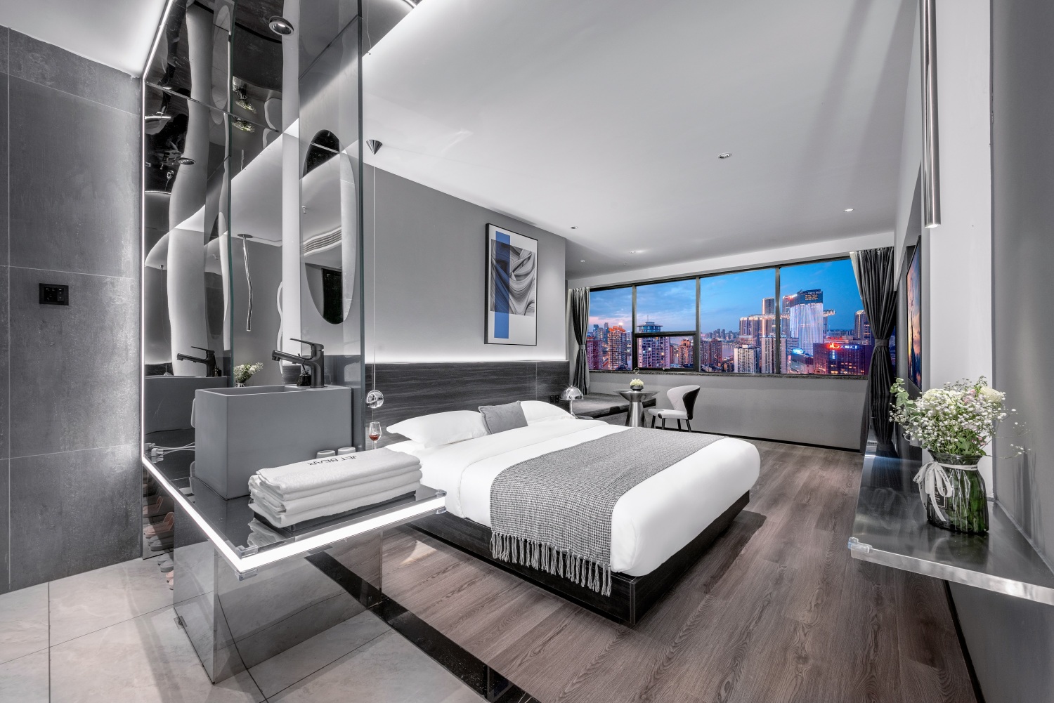 The hotel is located at the core of Hongyadong and Jiefangbei, next to the Yangtze River Cableway. It is within a 20-minute drive from attractions like Liziba Light Rail Station, Nanshan One Tree Lookout, and Nanbin Road. Hotel amenities include: