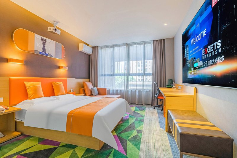 [酒店硬件]高清投影儀、42寸網絡電視、房間都為獨立空調、24小時熱水、吹風機、各種型號手機充電器、充電寶等, 客房家具均使用實木定制,高端的地板磚,沒有任何化學污染,所有的裝修材料都選用新型綠色環保材料,高品質洗漱套裝和香氛沐浴用品。輕柔親膚自然床品。