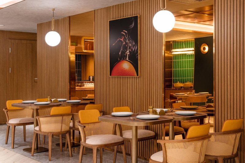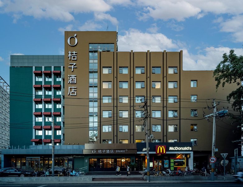 桔子酒店品牌隶属于华住酒店集团中高端设计师酒店,华住酒店集团拥有20多家品牌,包括汉庭、全季、美居、美爵、漫心、花间堂等全国6900+门店。酒店位置优越,地处高梁桥斜街,与交通大学南门相对,东毗西直门立交桥,西邻动物园,海洋馆,与中关村高科技园区仅咫尺之遥,周边交通便利,附近商场凯德MALL(西直门店),附近药房,超市,餐馆饭店一应俱全,非常方便。酒店大堂设计风格为青铜金现代都市轻奢风格,精致典雅,祖母绿绿色背景墙面选择玻璃背面发光工艺橙色拼图,透露丰富艺术气息,加上科技感的无限延伸给人一种视觉冲击力强,100平米的商务访客大堂,休息区配备休闲椅,智能机器人24小时为您领航,送货上门。
