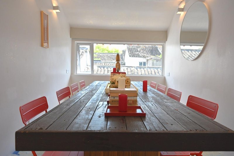 民宿共6间客房,有家庭房,大床房和双人床3种房型。室外白墙黑瓦,室内海派精致,古典与现代相契相融的设计,院里有主人留下来的老石榴树,太湖石,也有新植的芭蕉紫藤和凌霄,小而精,美而雅。