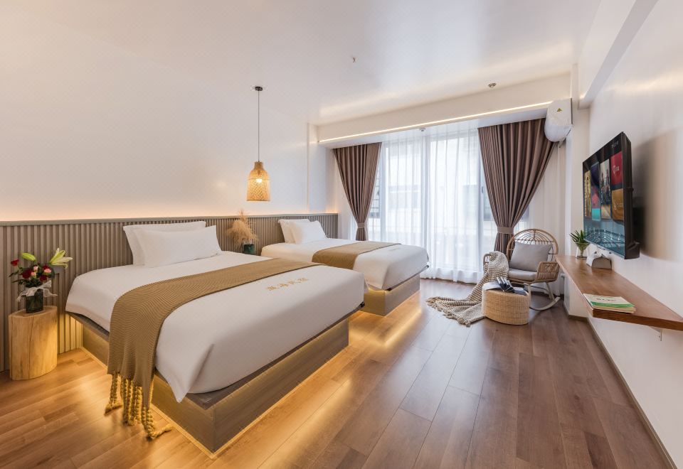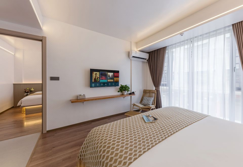 双宿·设计师大床房(茶座+全景落地窗+高清投屏电视)