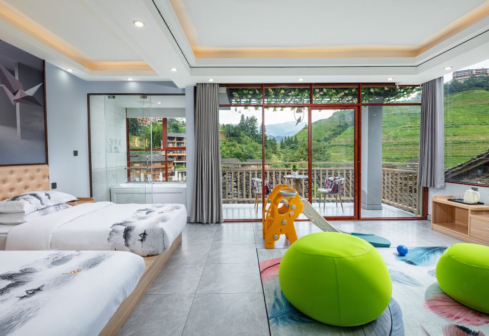 【商圈】酒店地处桂林市龙脊梯田核心地带,距离金坑梯田金佛顶观景台驾车约5分钟,千层天梯观景台驾车约10分钟,西山韶乐观景台驾车约15分。
