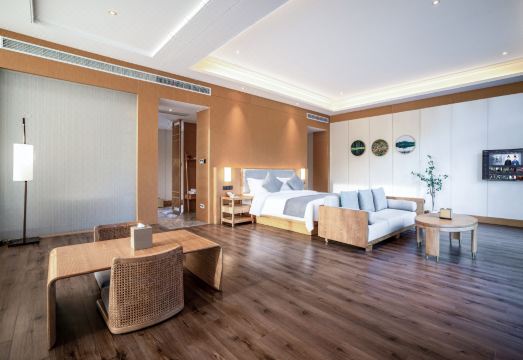 The hotel is located in Jinhu Water Forest Park, a 4A level tourist resort, surrounded by forests on all sides; Walking for about 5 minutes, you can reach Shuitian Line bamboo raft drifting, away from the hustle and bustle of the city, and enjoy the gifts of nature.The hotel rooms feature forest view light rooms and are equipped with some hot spring courtyard room types. The room layout is modern and unique, with a distinctive style; The soft king size bed allows you to sleep soundly all night, while broadband makes business and leisure easy.There are natural hot spring pools here, creating a healthy, green, and high-quality lifestyle for you.The viewing conference room can hold meetings for 30 to 300 people. The club restaurant is luxurious, spacious and bright, and can accommodate 250 people for dining at the same time. Staying at a hotel allows you to return to peace, feel elegance, encounter flowers like brocade, and experience a perfect new ecological slow life.Here, looking up at the cedar, pushing the window to see the water. You can share a 2000 acre private oxygen bar with egrets, and during the day, you can enjoy the egrets flying up close; At night, you can sleep with white egrets under the stars and moon, such as in the Peach Blossom Spring, living in the Forest Itching Realm. Let you truly enjoy the beauty of nature "forest breath, forest distance".