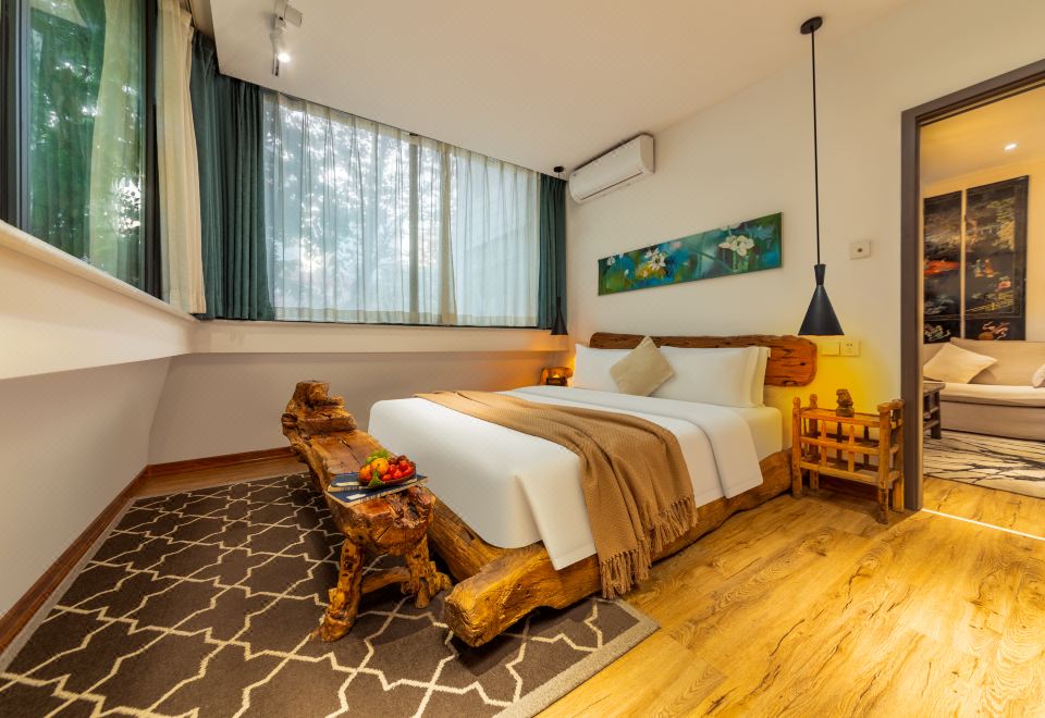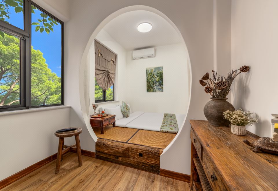 栖香·园景大床房(全屋地暖+飘窗古风茶台+乳胶床)