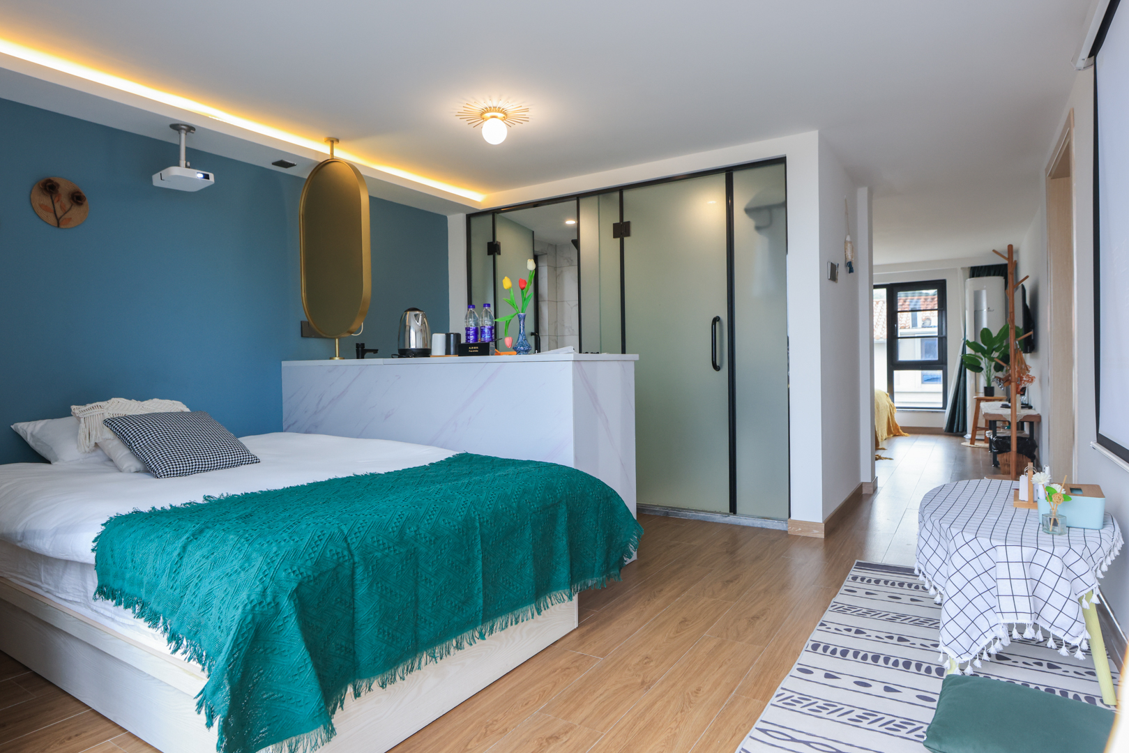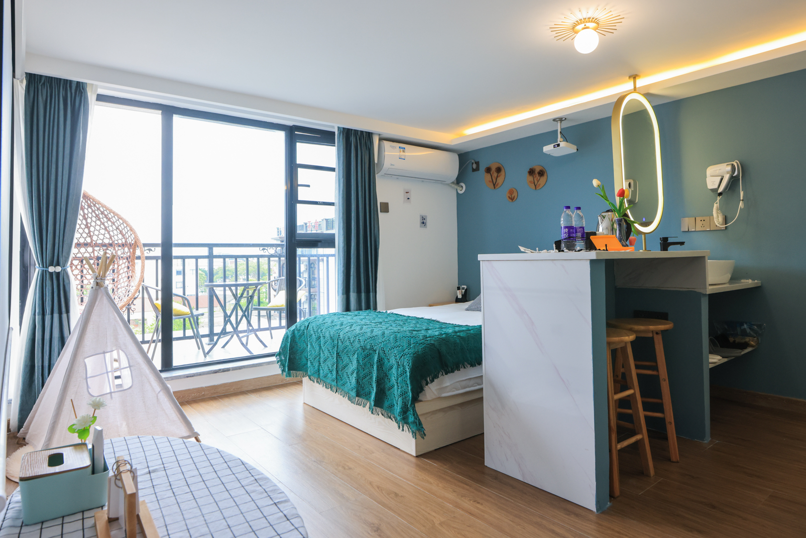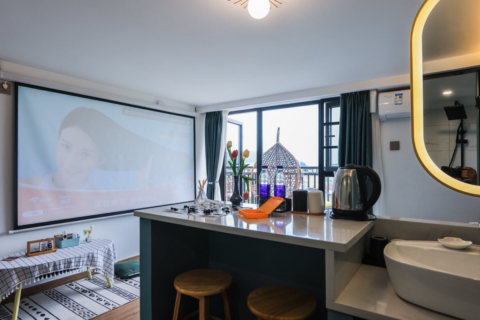 180°阳台三床套房(休闲吧枱+吊篮+投影+电动窗帘)