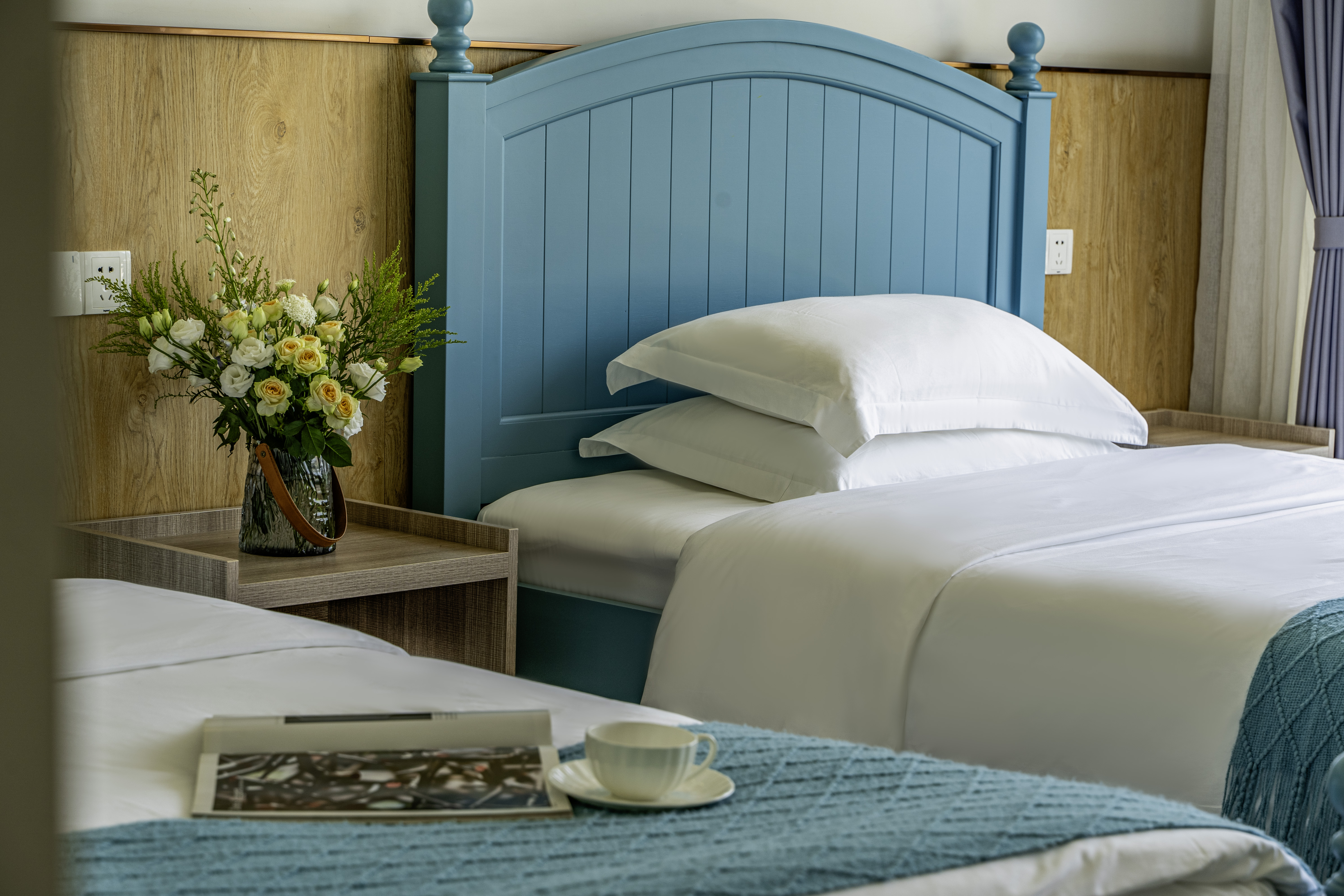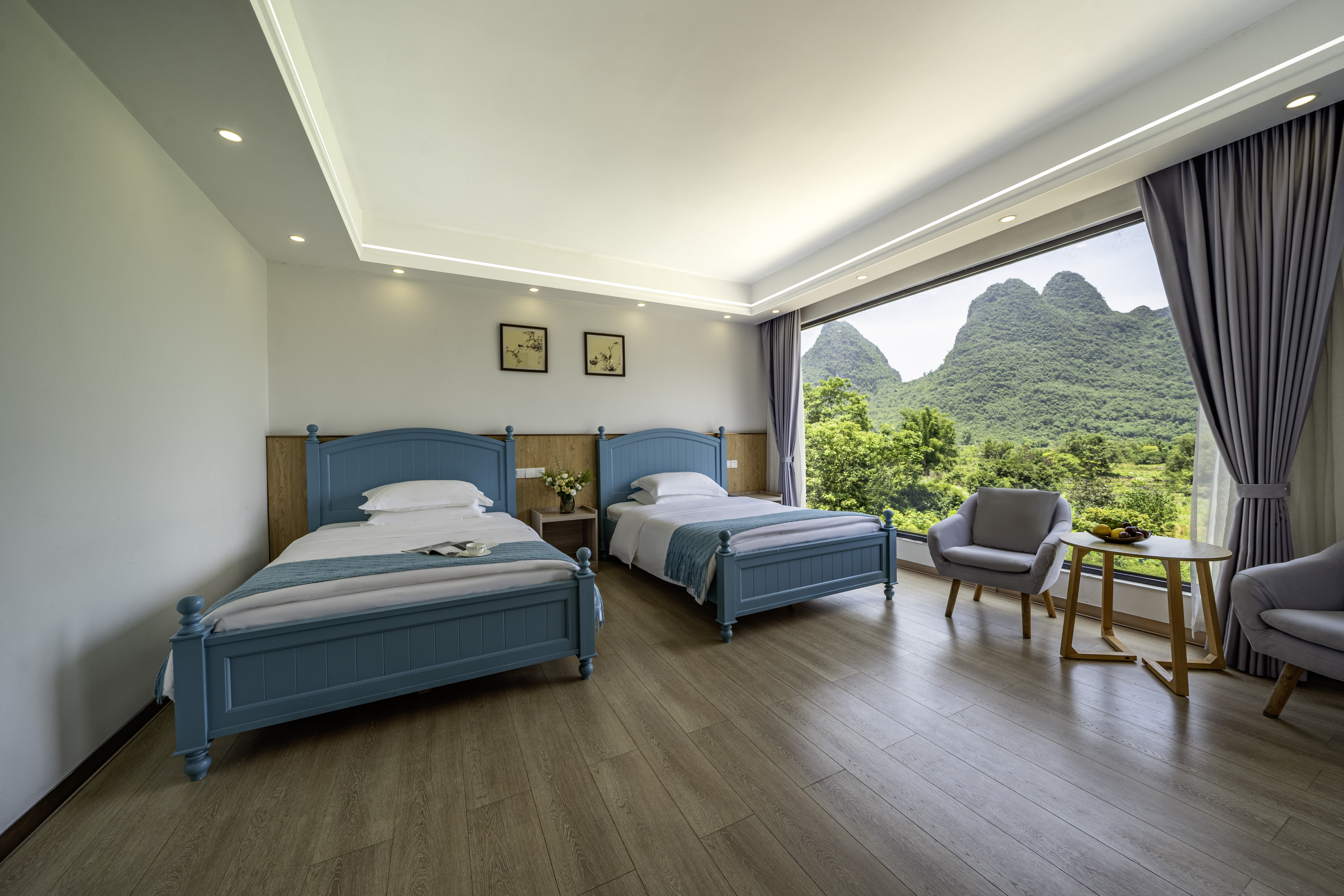 清雅·山景双床房(日落晚霞+田园风光+智能马桶)