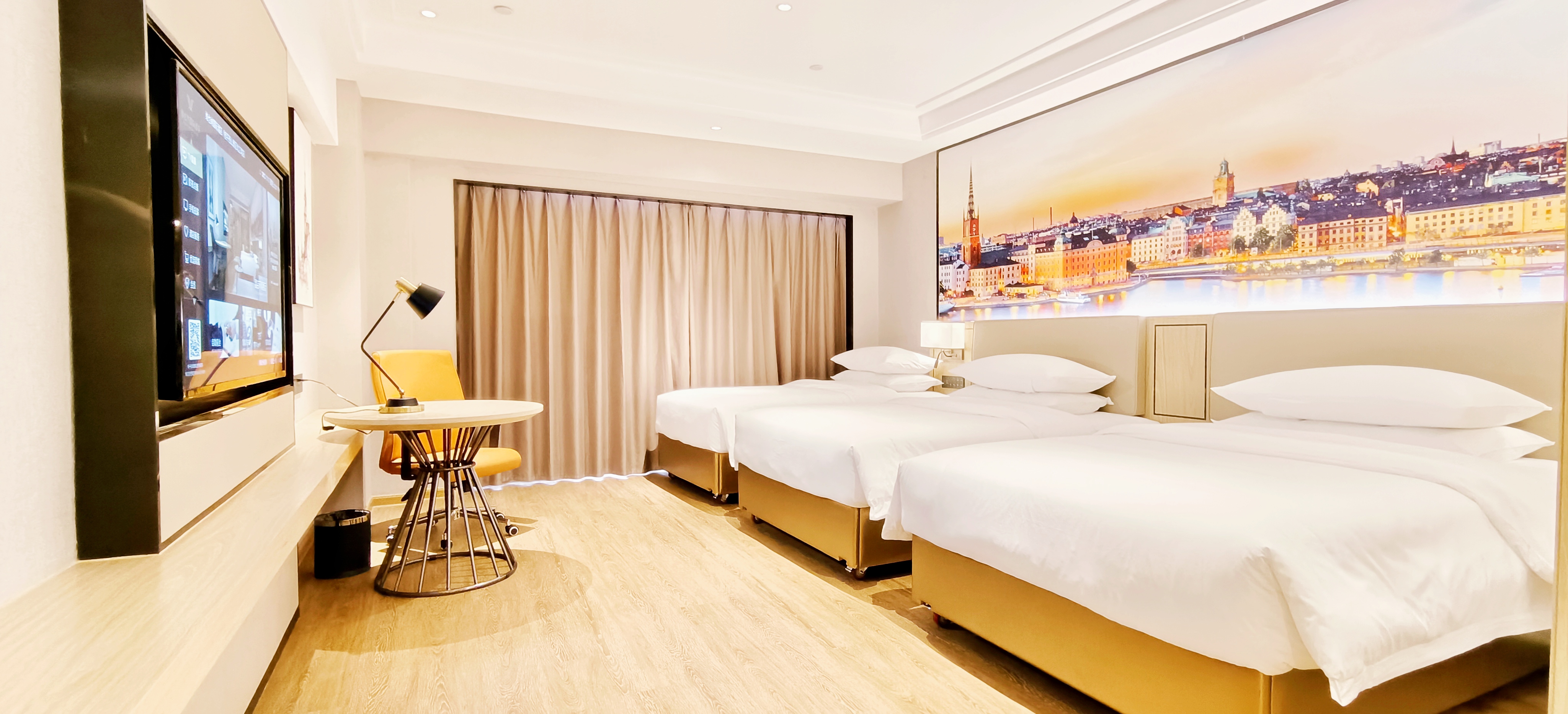 豪華三人房(全景落地窗+科技霧化玻璃+云感安睡床墊)