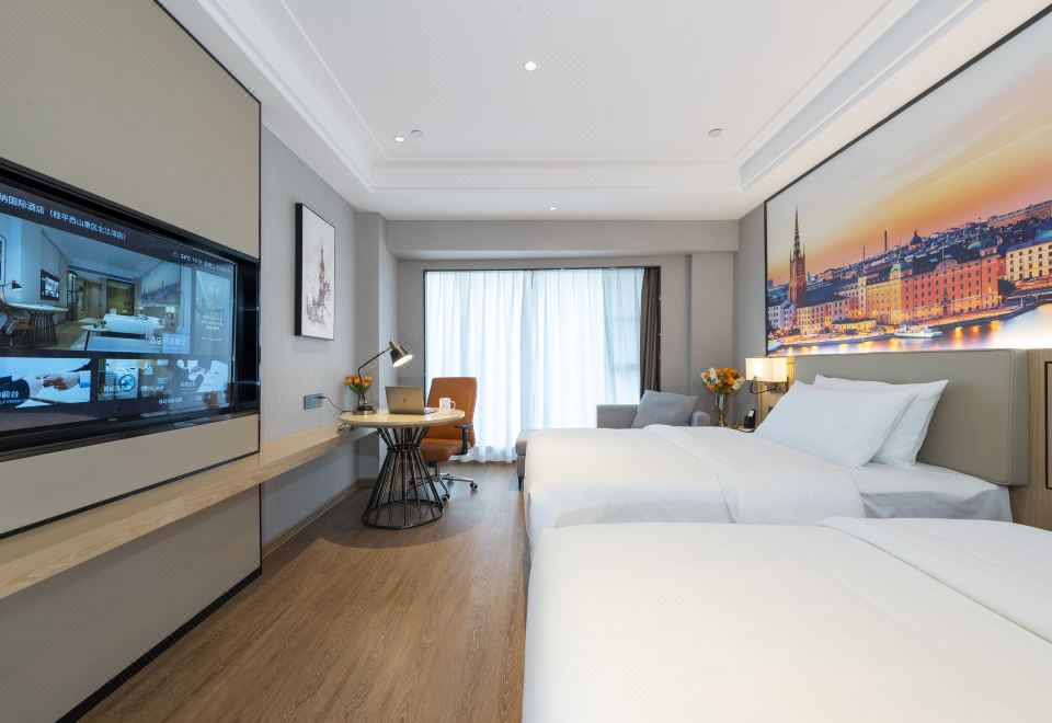 城景双床房(落地窗+智能马桶+贵妃椅+科技雾化玻璃)