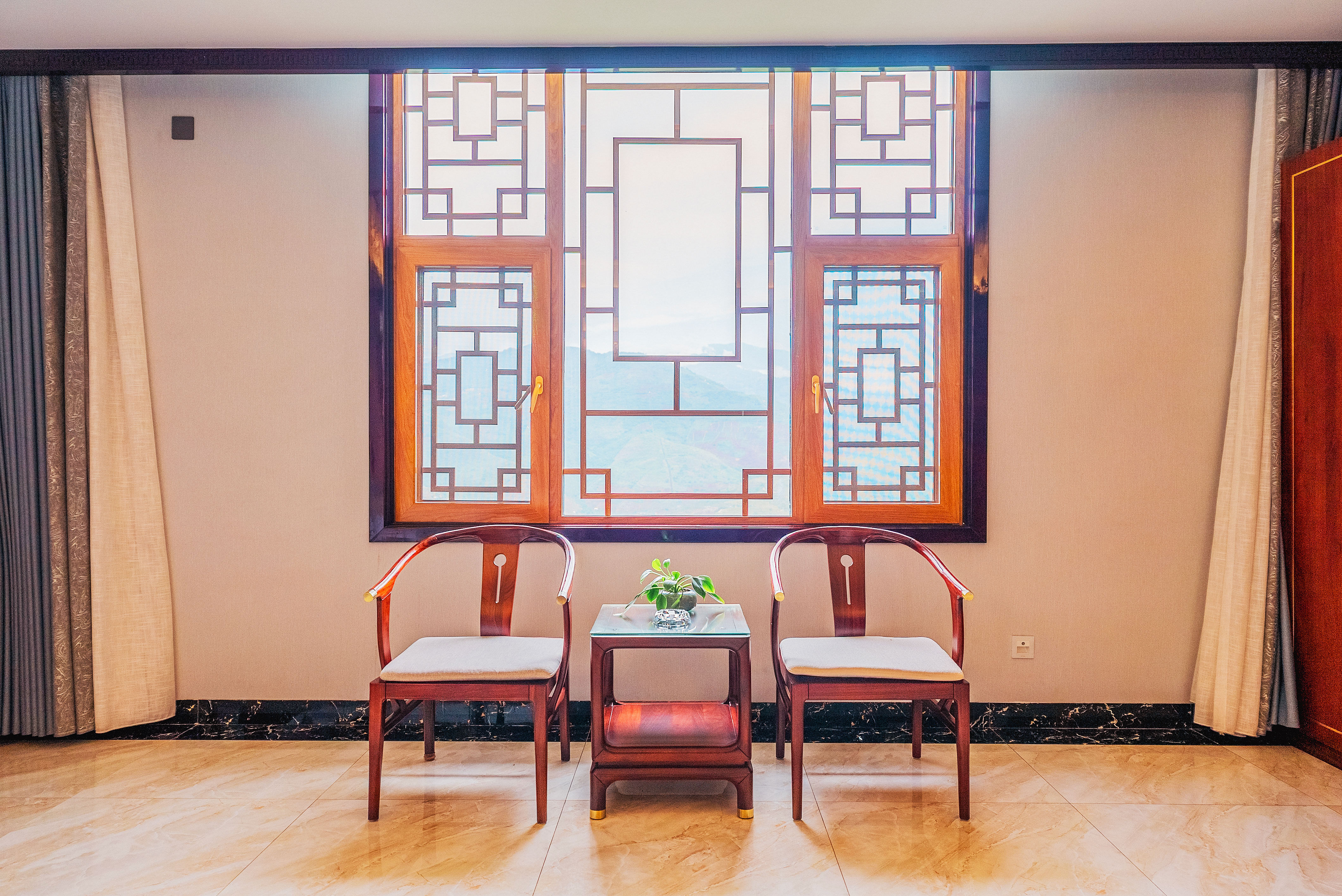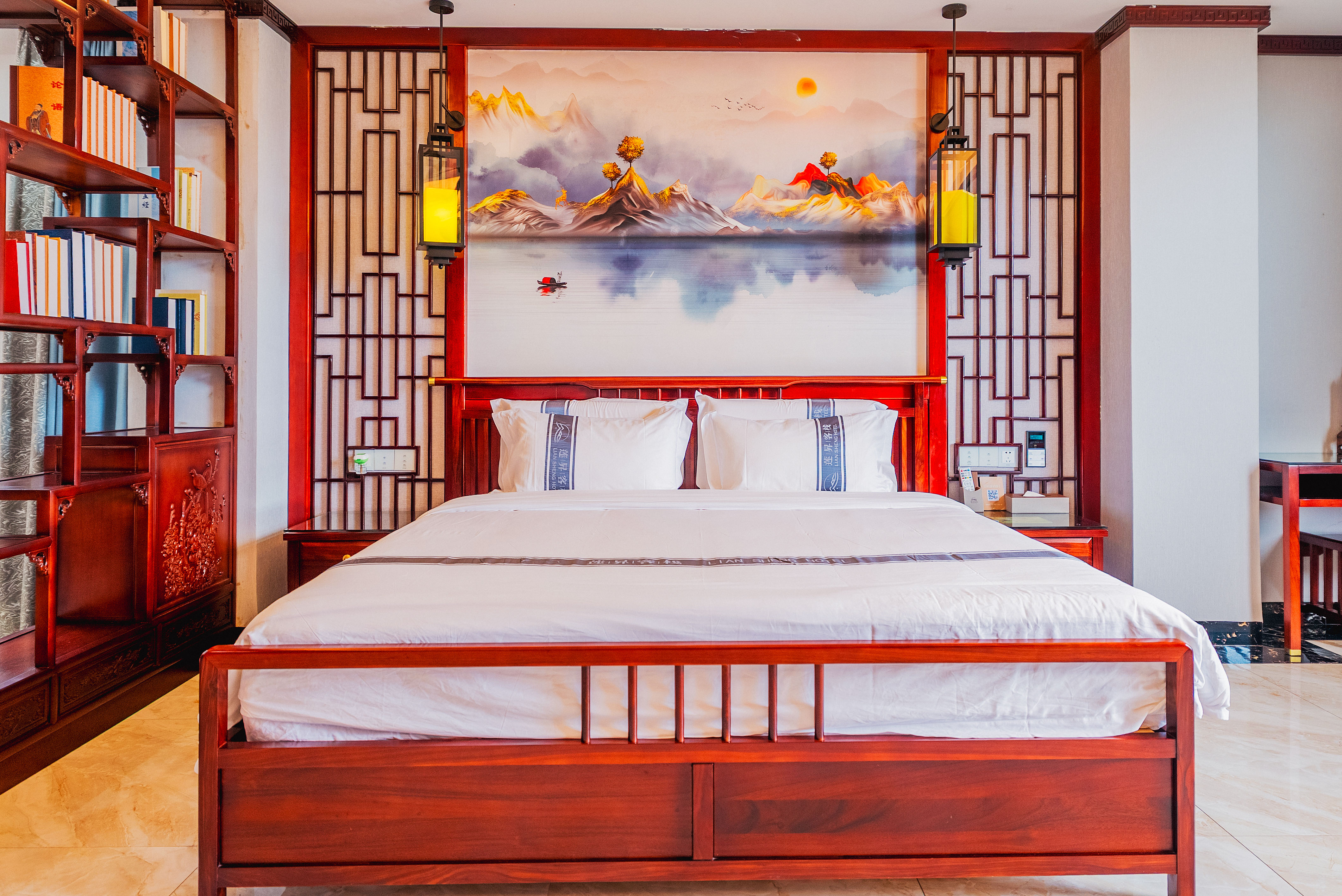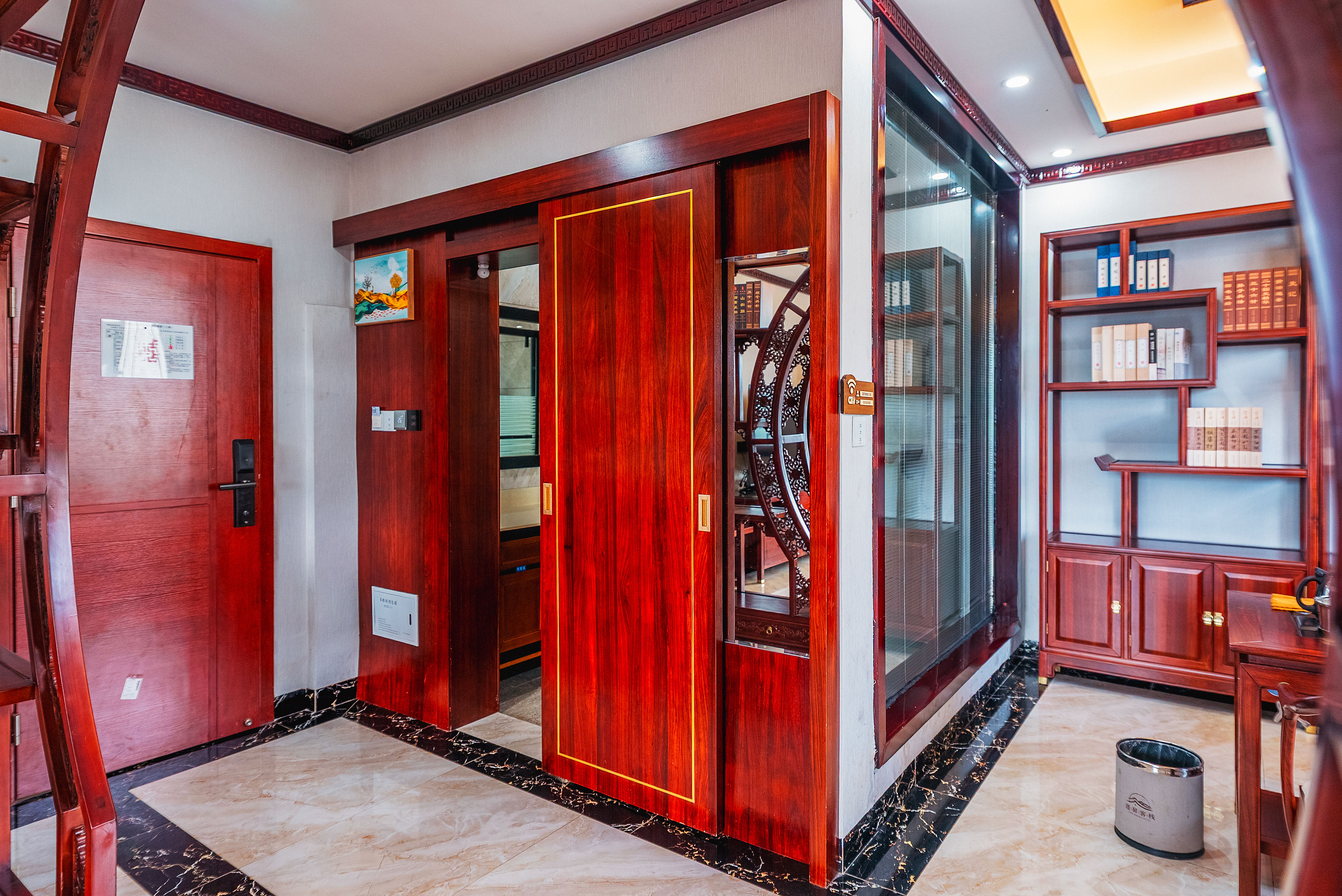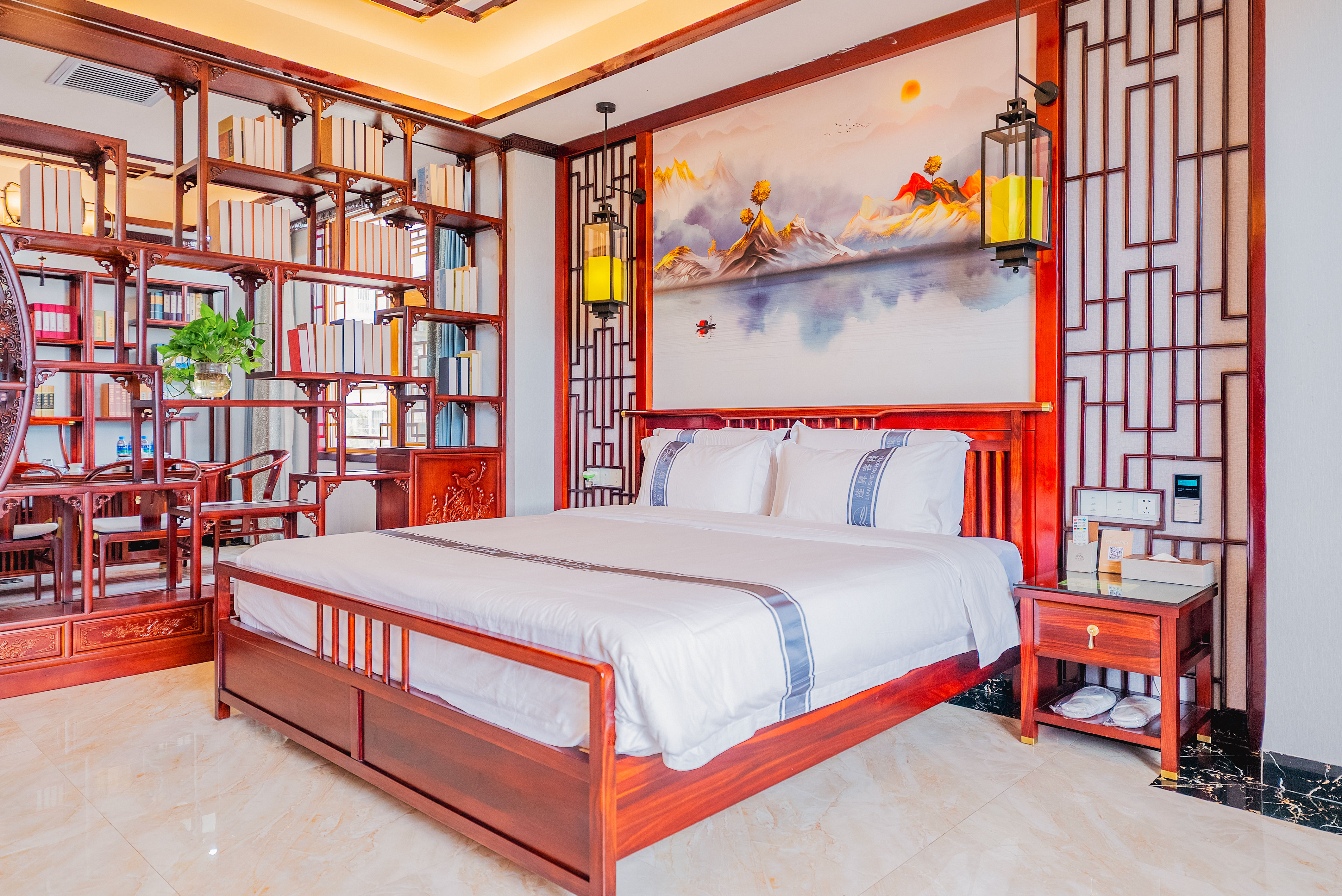 行政套房(山景+功夫茶台+智能小欧+智能马桶+新中式隔断月洞门博古架+会客分区)