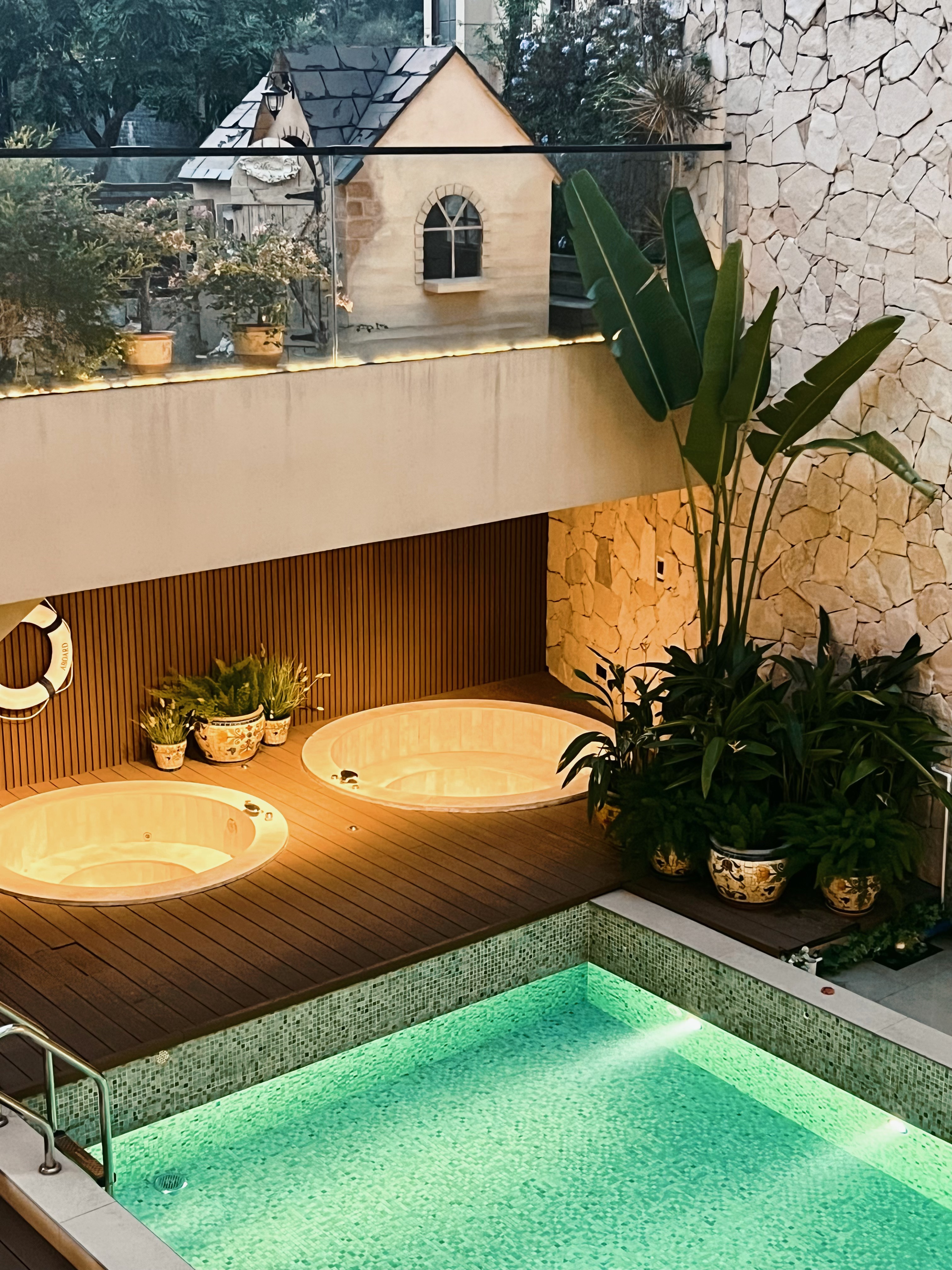 西班牙风情 · 独享别院包场(8个独立私汤温泉套房+地中海风情泳池+德式小木屋+KTV+棋牌室+烧烤)