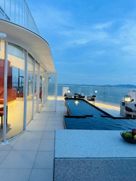 酒店坐标厦门市集美区杏滨街道海口路156号,隶属马銮湾环湾海域,配有自助洗衣房、自助早餐、会议室、海景露台公区、轻吧等设备设施。适合商务出差、休闲、自驾游等多种住宿选择。6楼海景露台公区,依山傍海,半山半水,三五好友相约,泡一壶茗茶,斟两杯小酒,观日出日落,赏渔舟唱晚,在这快节奏的热闹繁华中感悟落霞与孤鹜齐飞,秋水共长天一色的不同体验