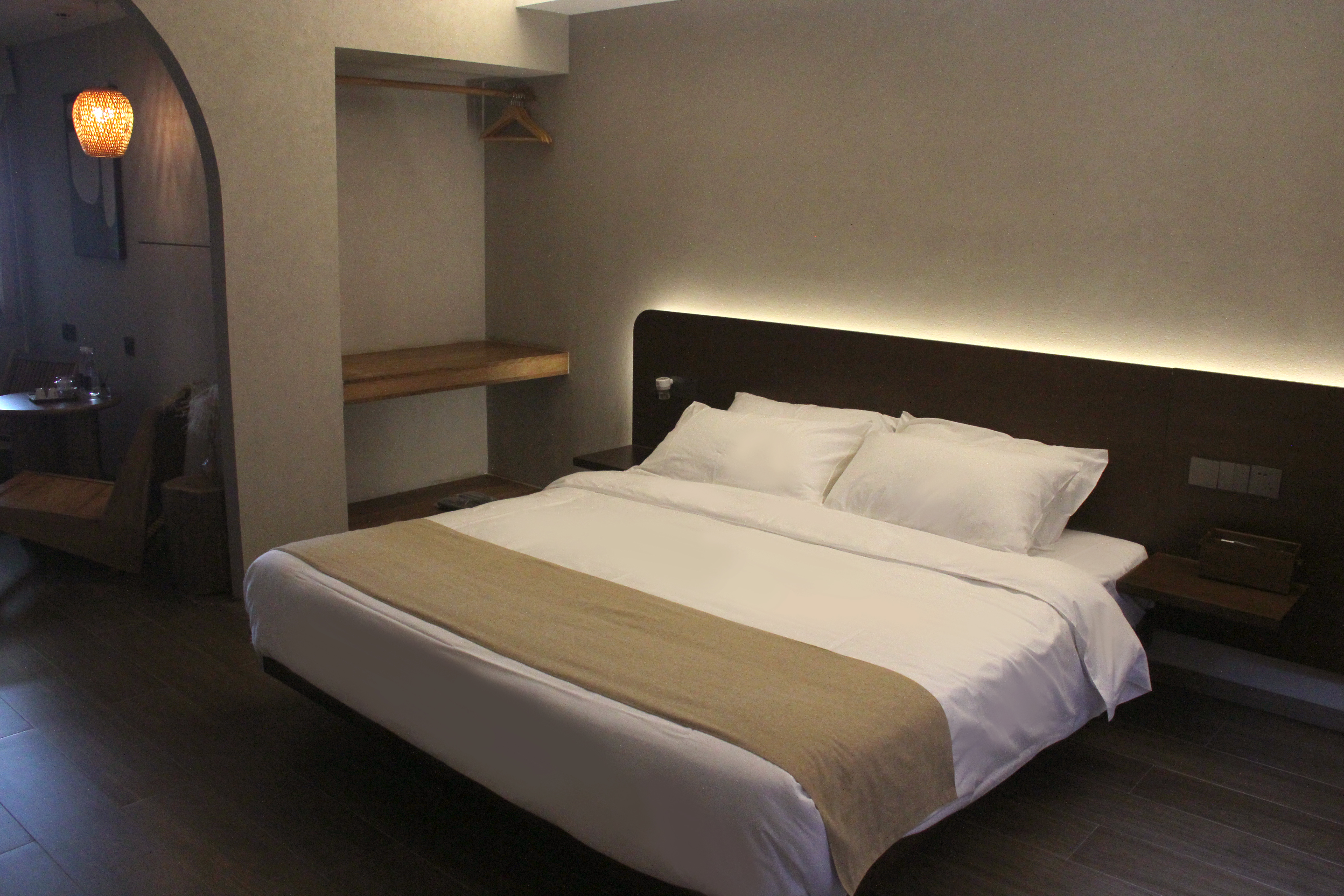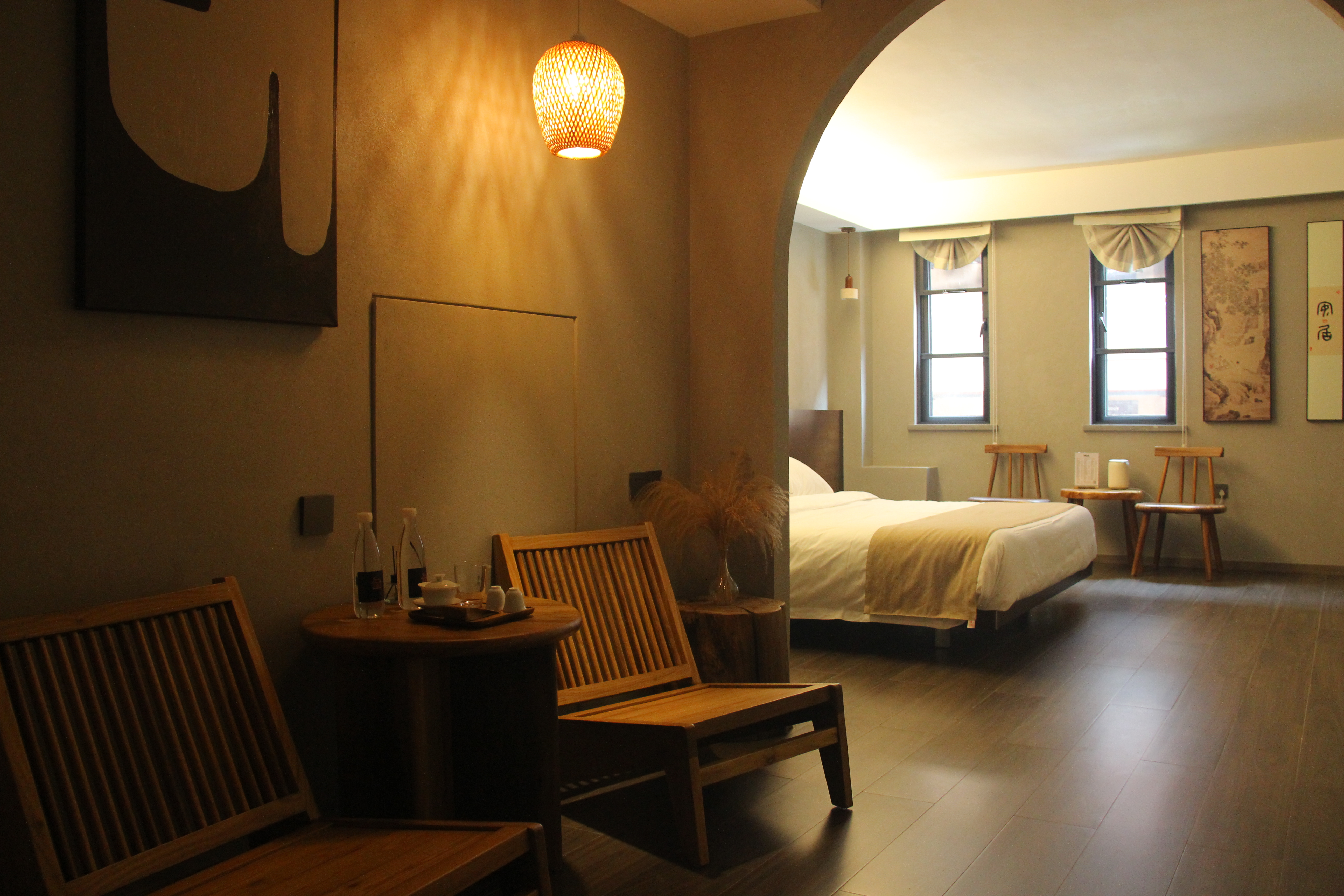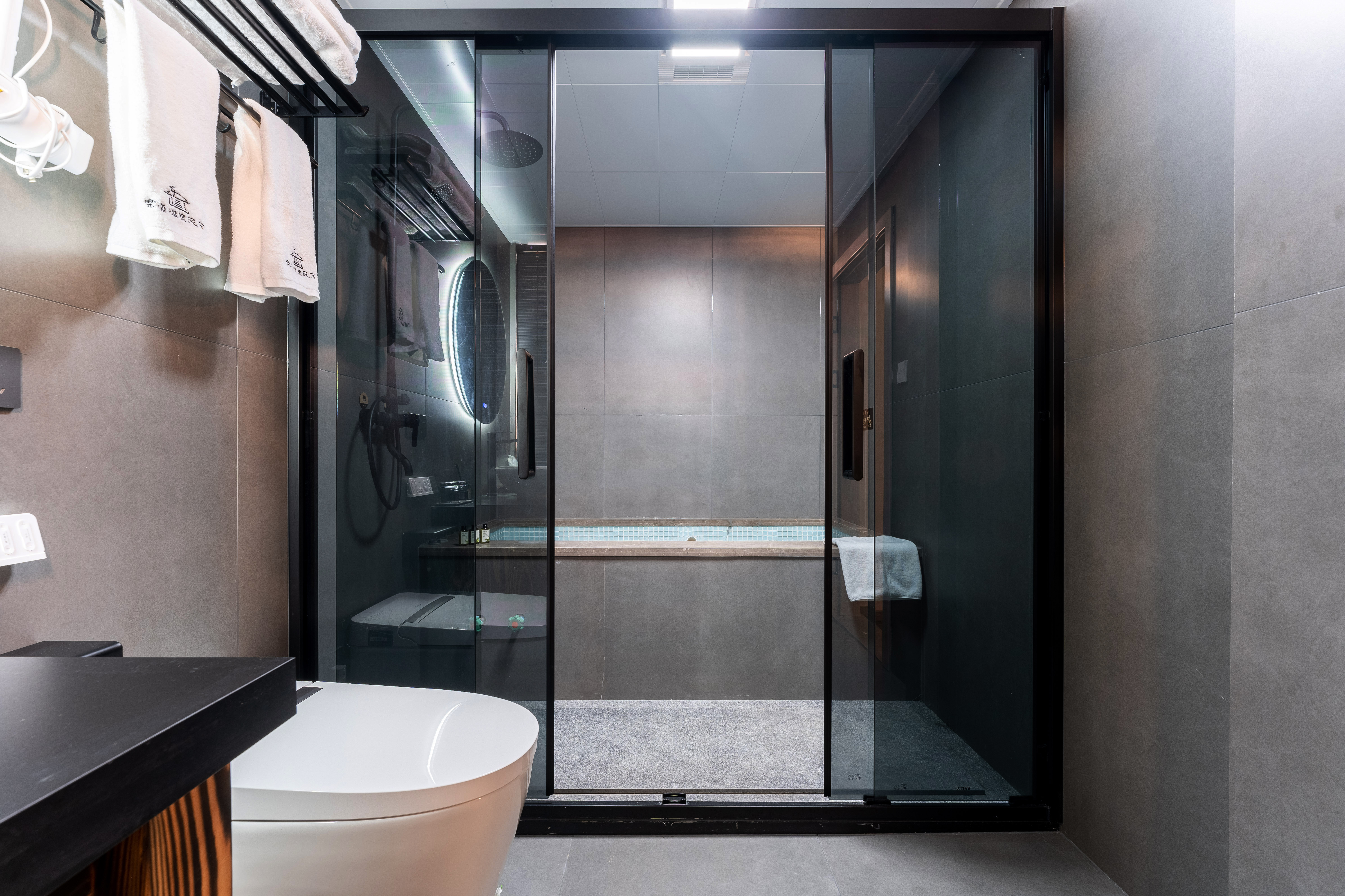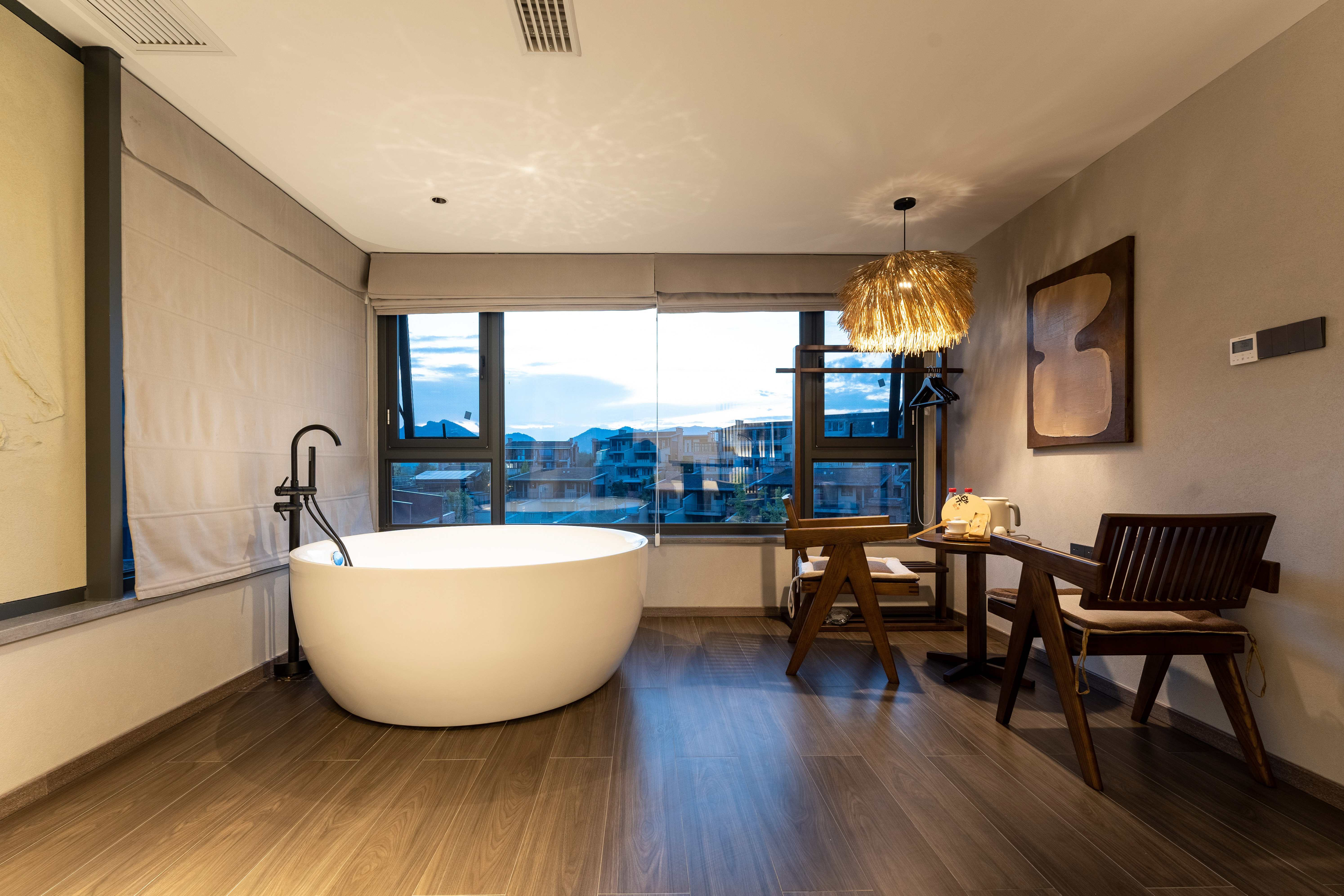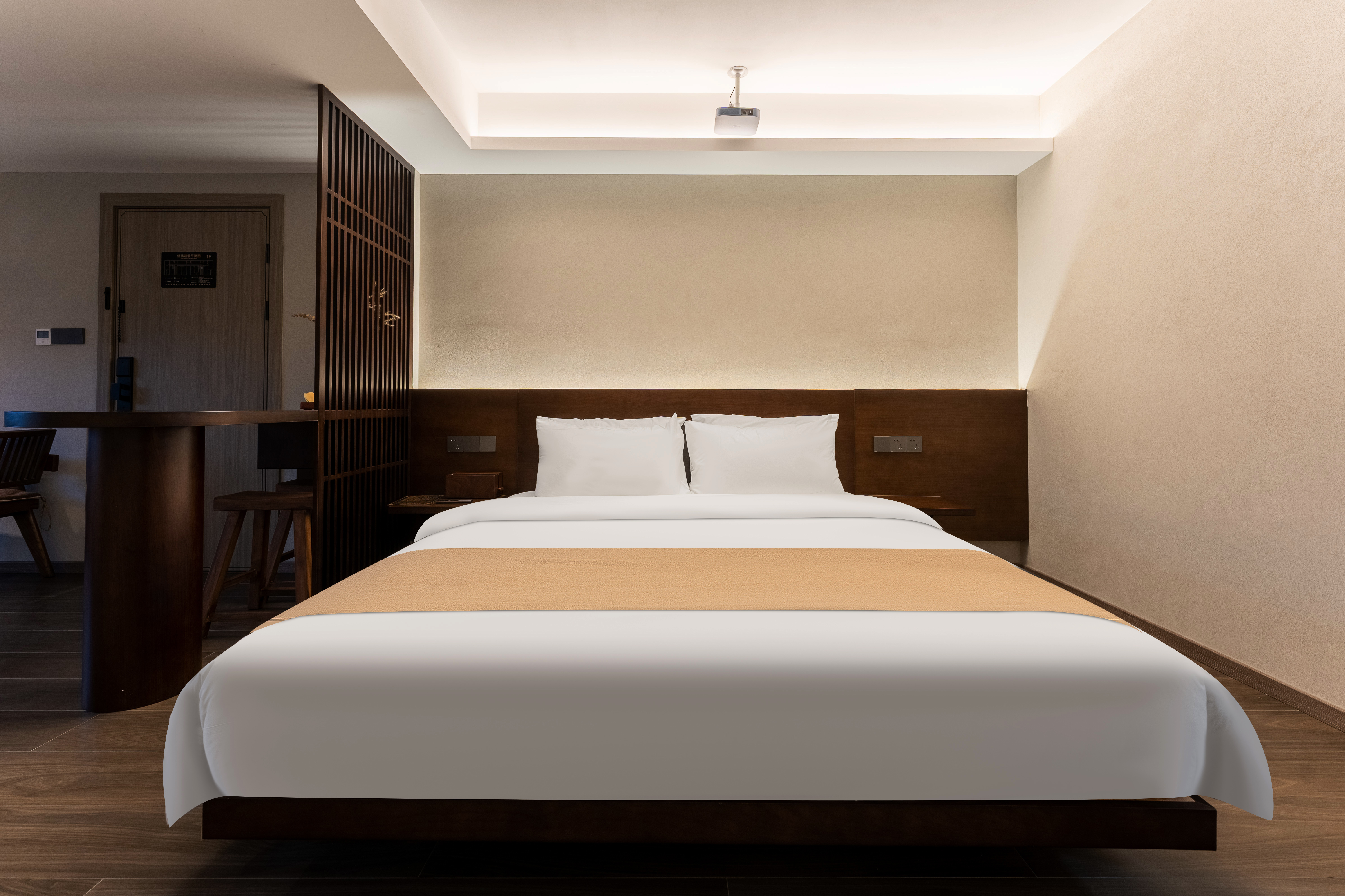 对弈·温泉大床房|私汤温泉泡池|巨幕投影|原木茶台