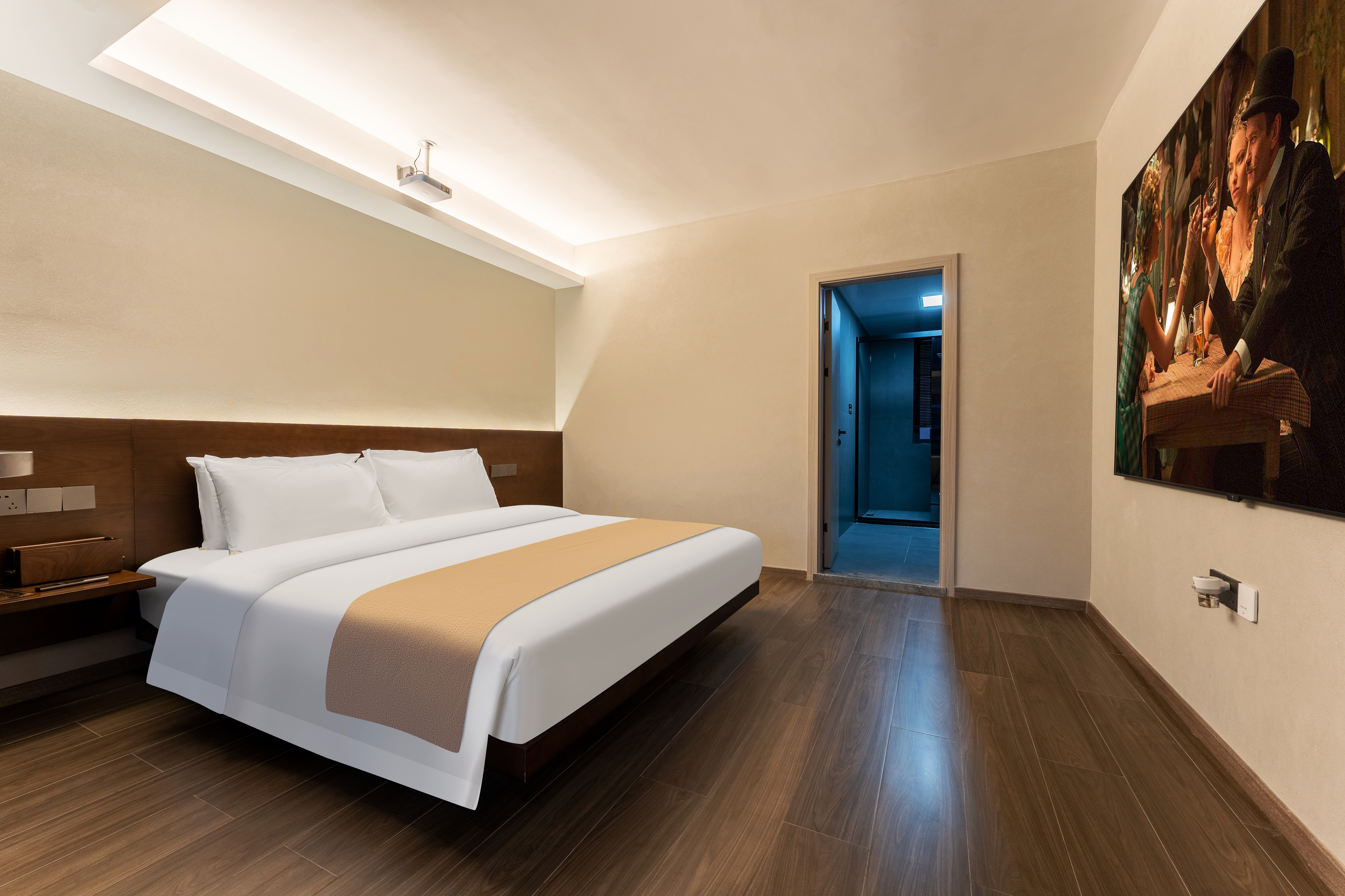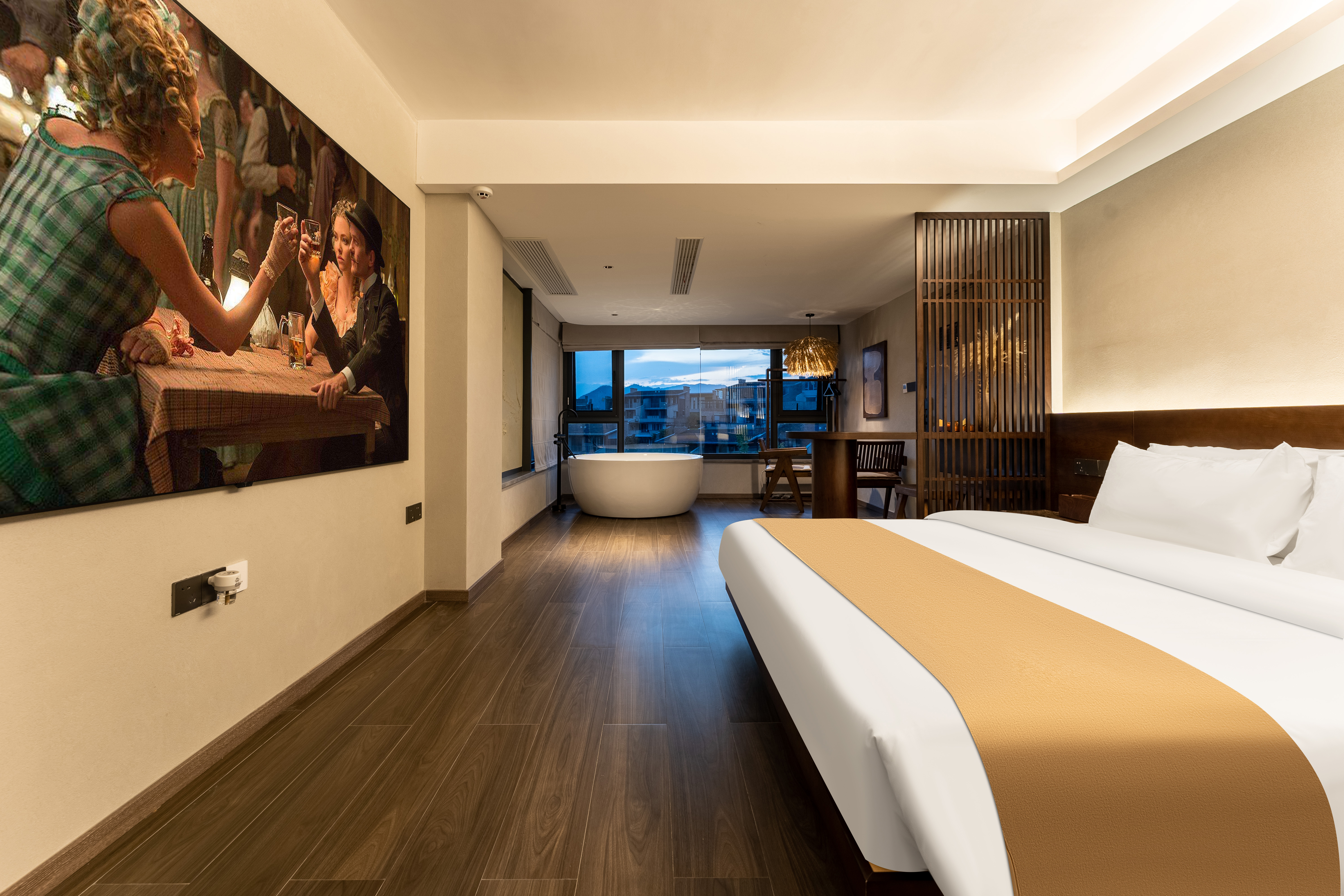 侯月·温泉观景大床房|观景浴缸|温泉浴|城景|投影仪