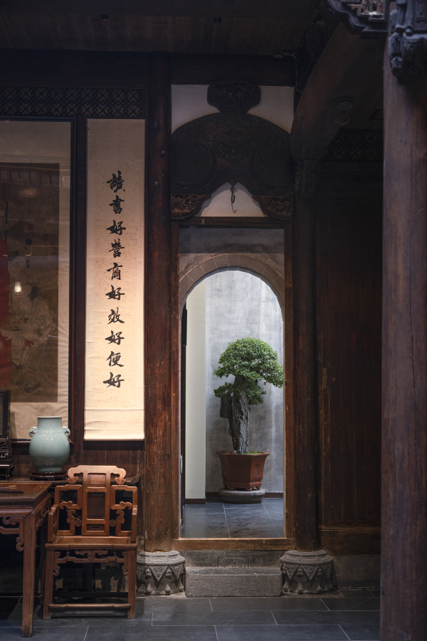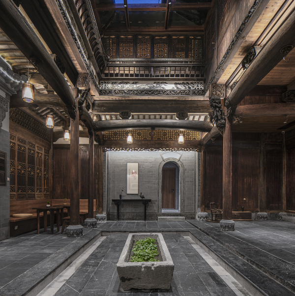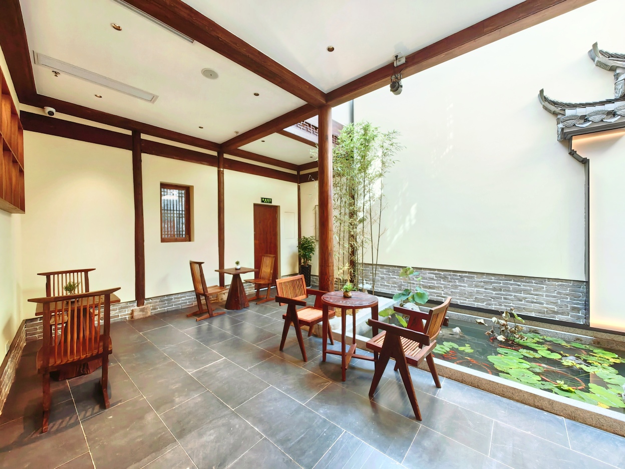 江园·老街里精品古建民宿 地处于安徽省黄山市屯溪老街的中心位置,闹中取静。整个民宿以一栋徽州古宅为核心拓展改建而成。古宅位于屯溪老街海底巷中,据考证由清乾隆年间一江姓茶商所建造,保留至今已有超过200年历史,现由江氏后人拥有并经营,故取名“江园”。民宿保留了徽州老宅的原始风貌,同时又分别由两位来自上海和香港的知名设计师设计改建,将现代审美元素和生活方式融入古朴的徽州古宅之中。民宿占地750平米,共拥有十间客房。为保证居住舒适性,所有区域均配套有空调和地暖设备。同时,在不大的面积中融入了多处景观,做到屋中看景、景融于屋,让住客所处老宅中能亲身体会徽州文化的美感和魅力。