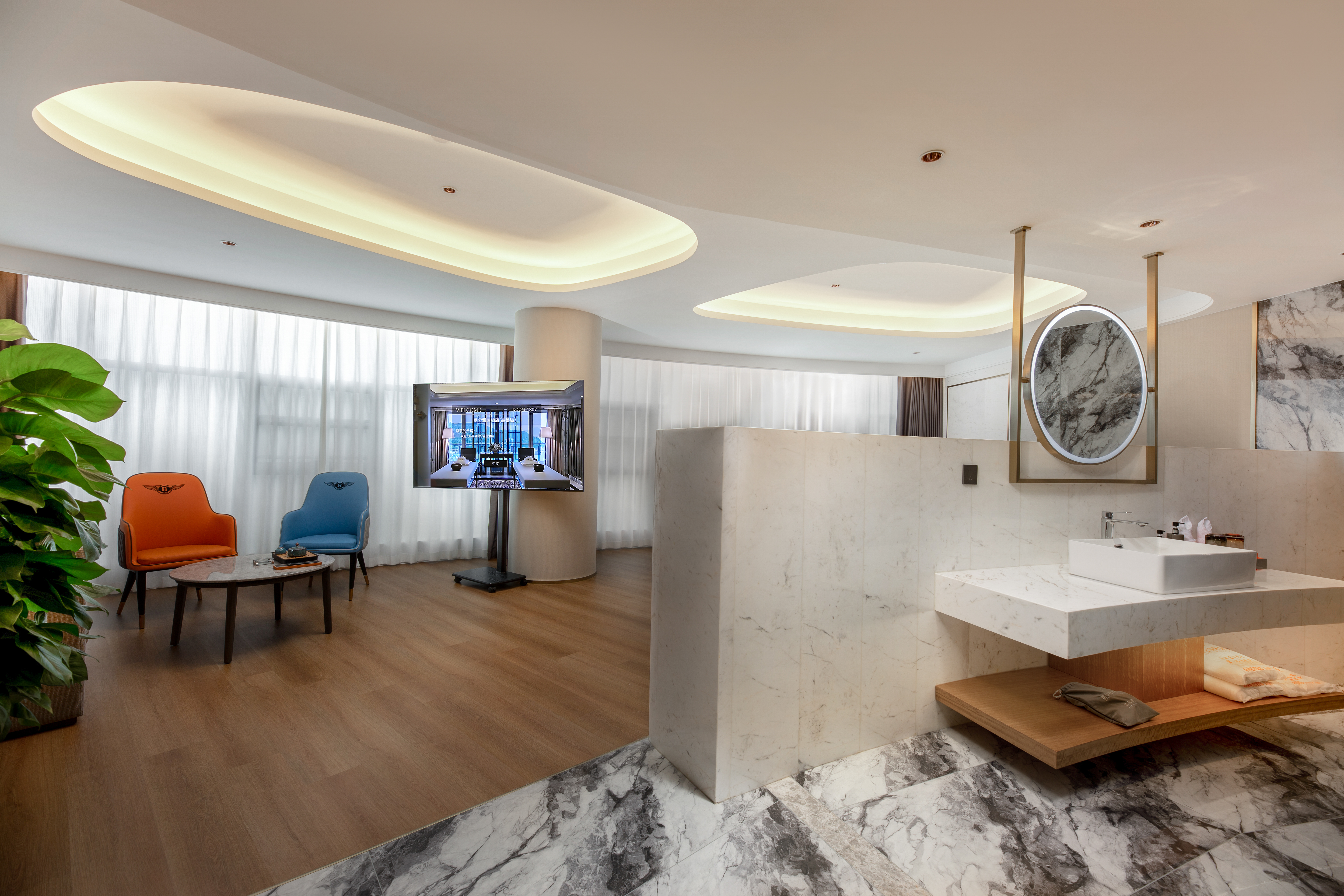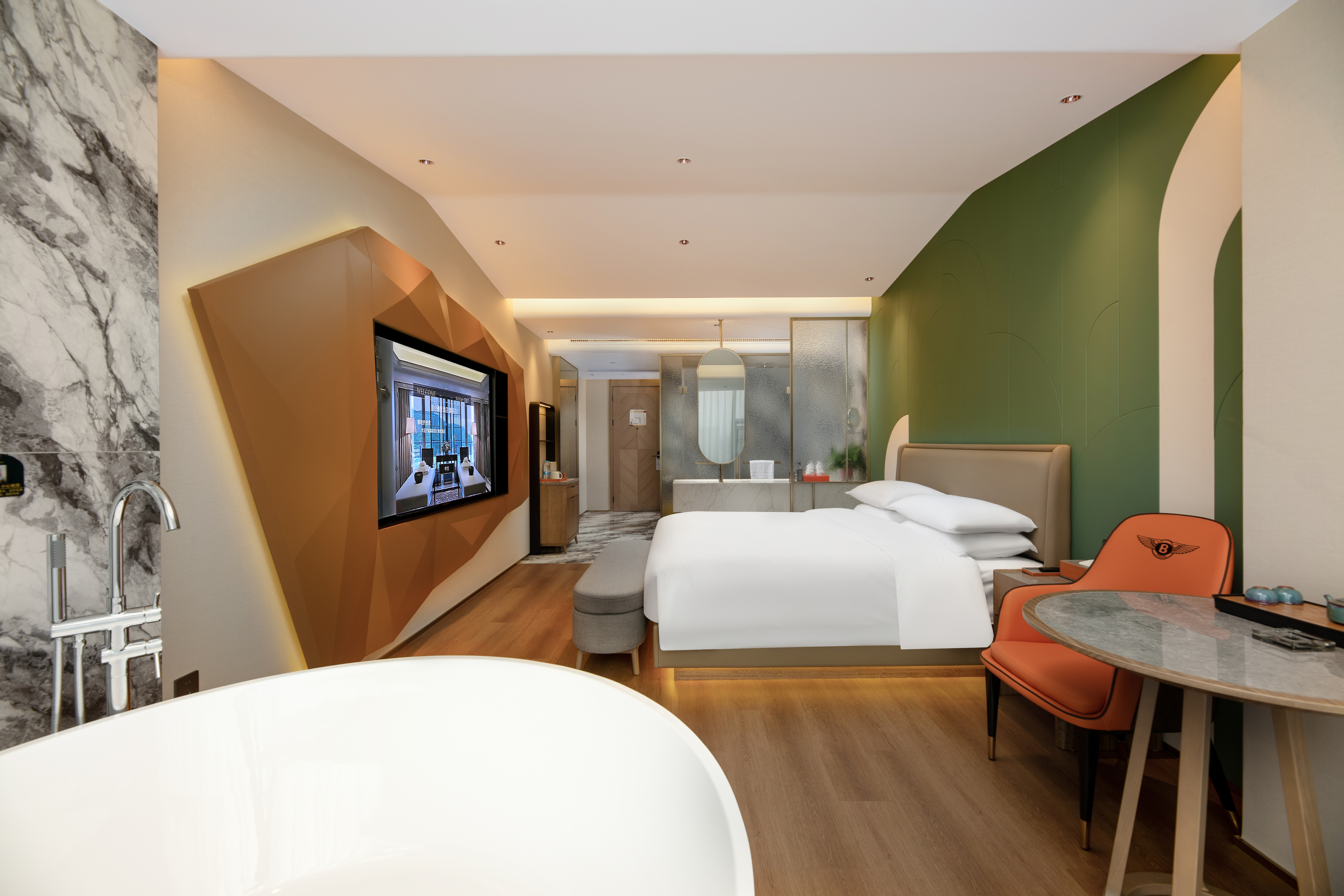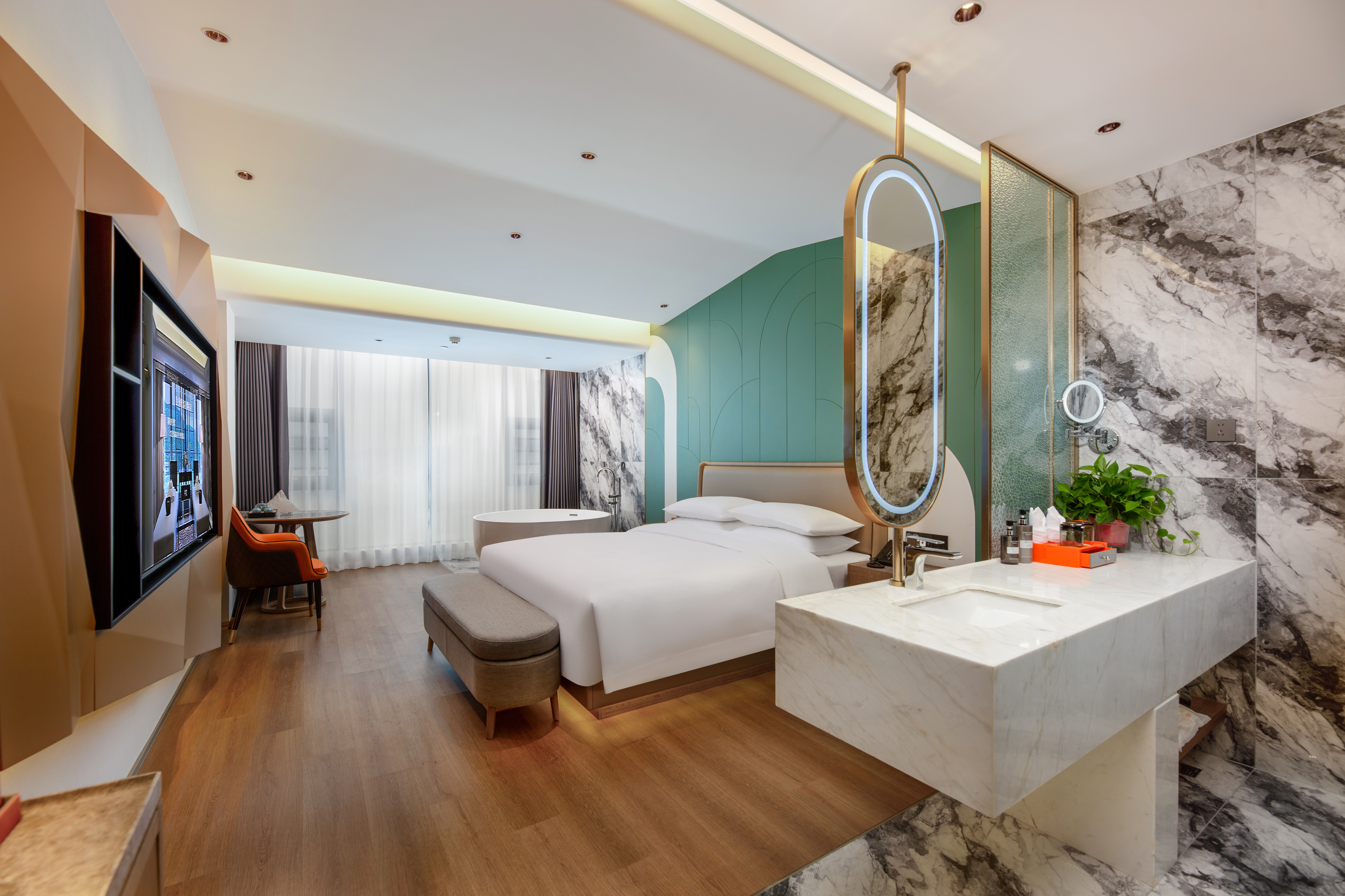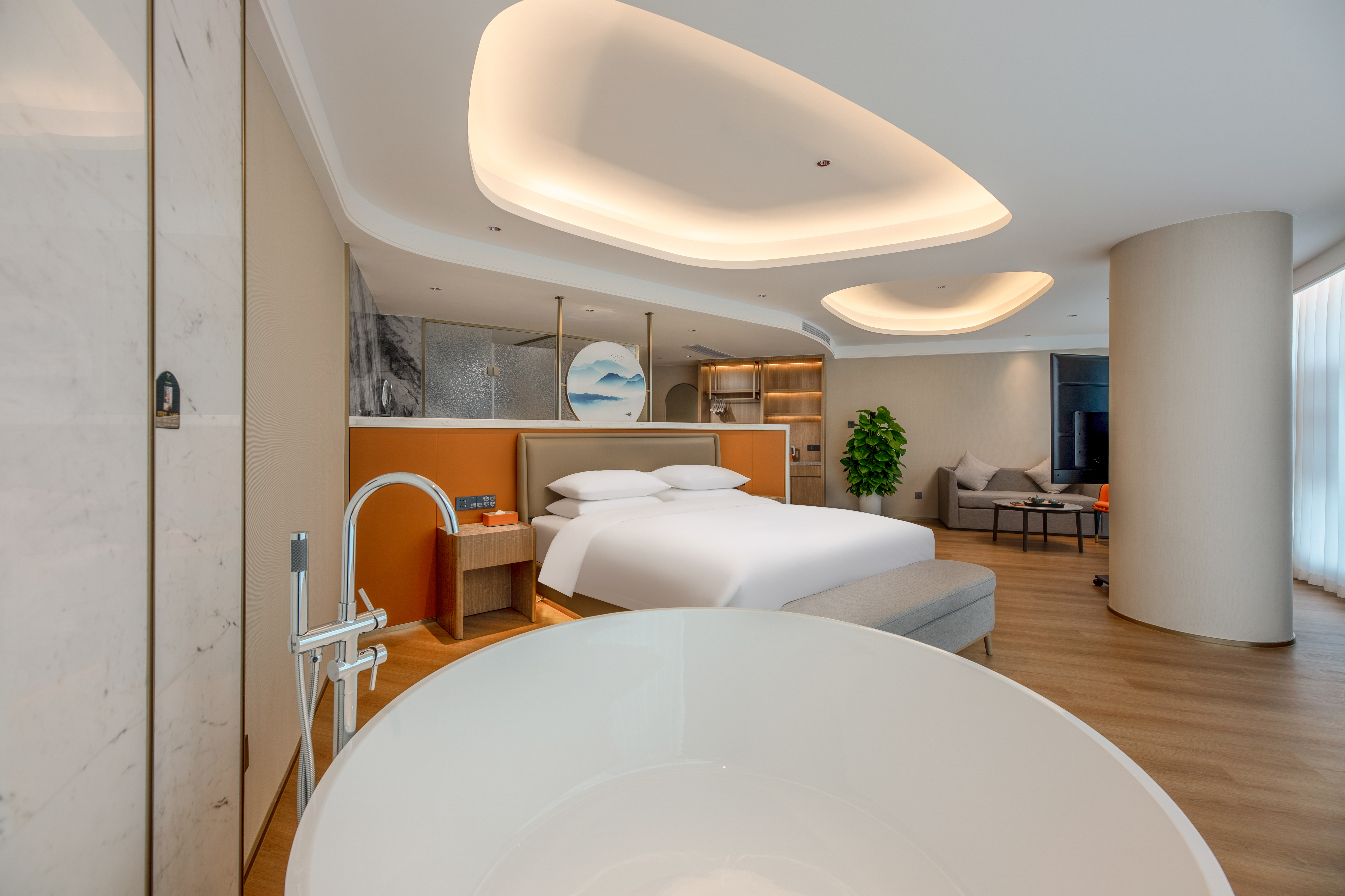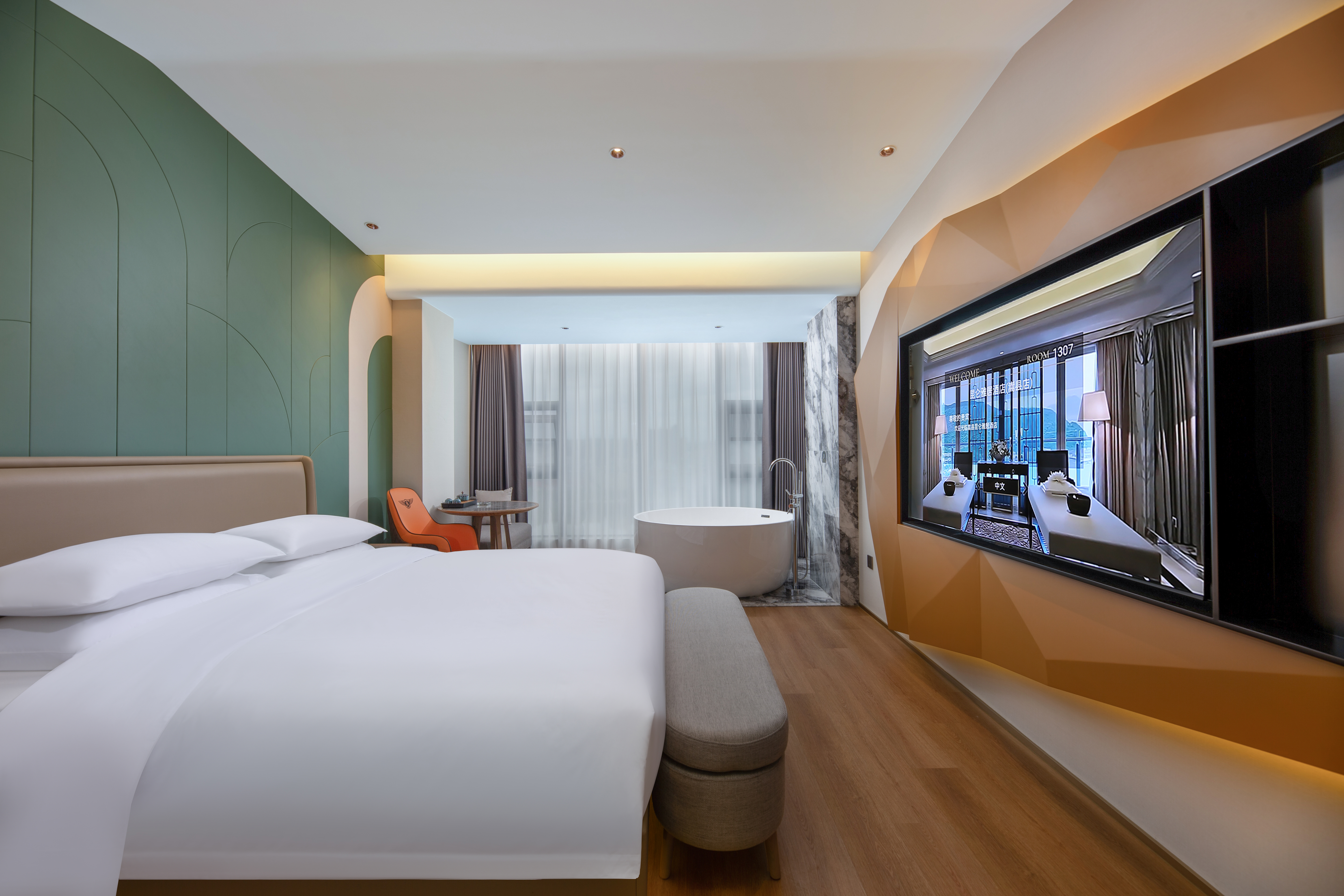 雅居全景大床房(127°落地窗+超大圓浴+高清影音效果)
