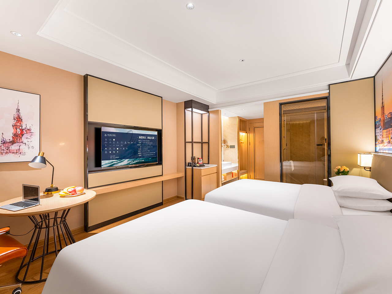 豪华双床房-小度智能+百兆光纤+65寸可投屏大电视+新风系统
