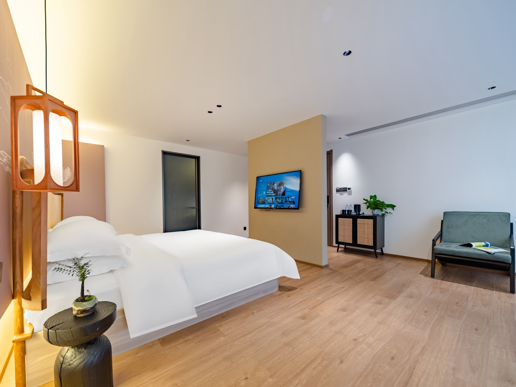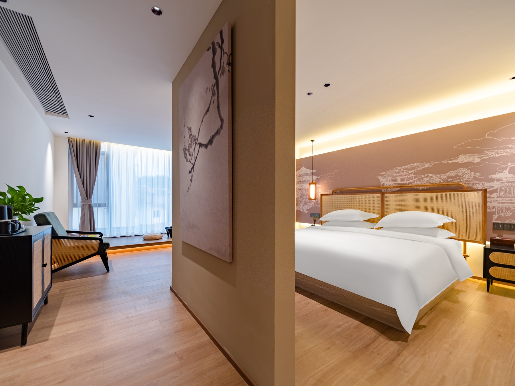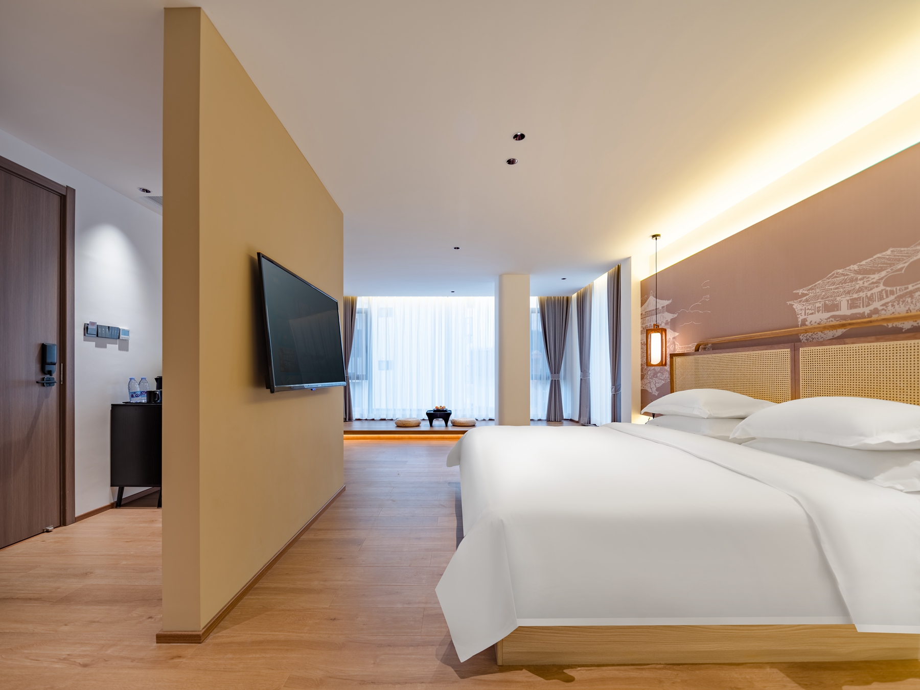 遇见·豪华浴缸大床房(落地全景+榻榻米茶席+智能马桶+乾湿分离)